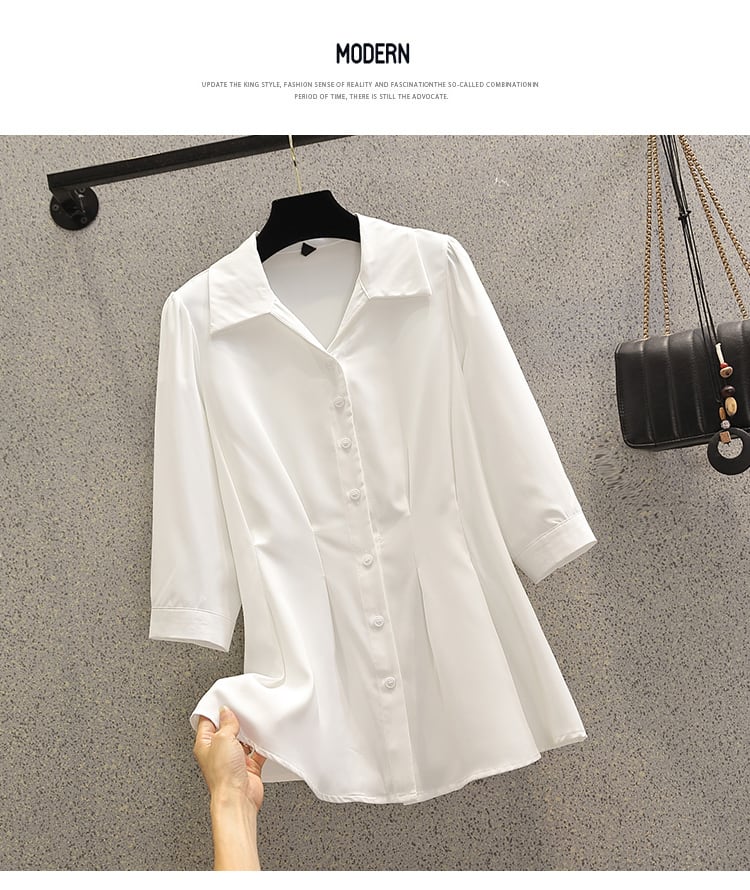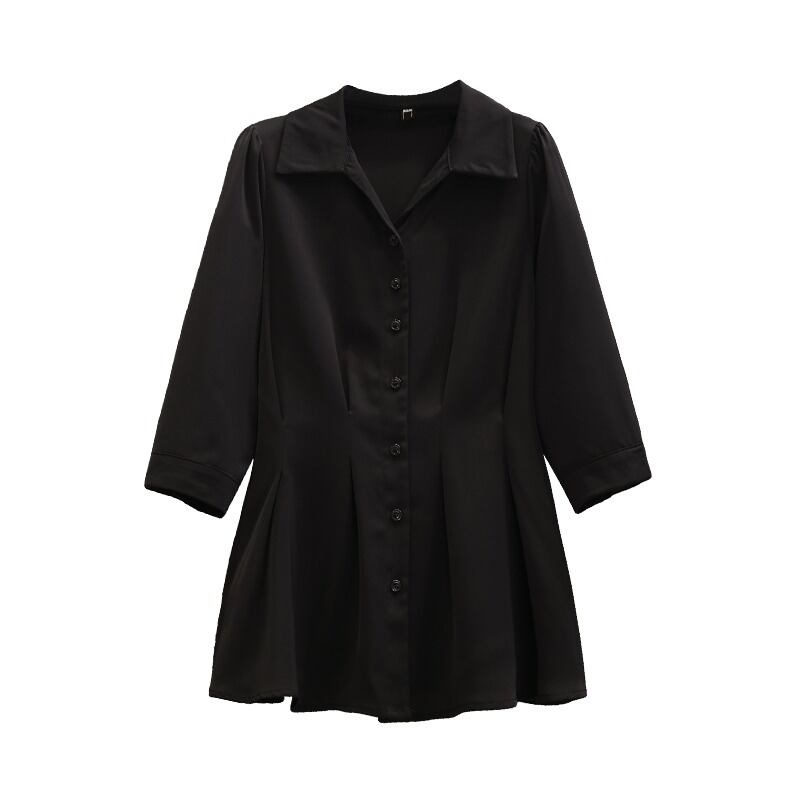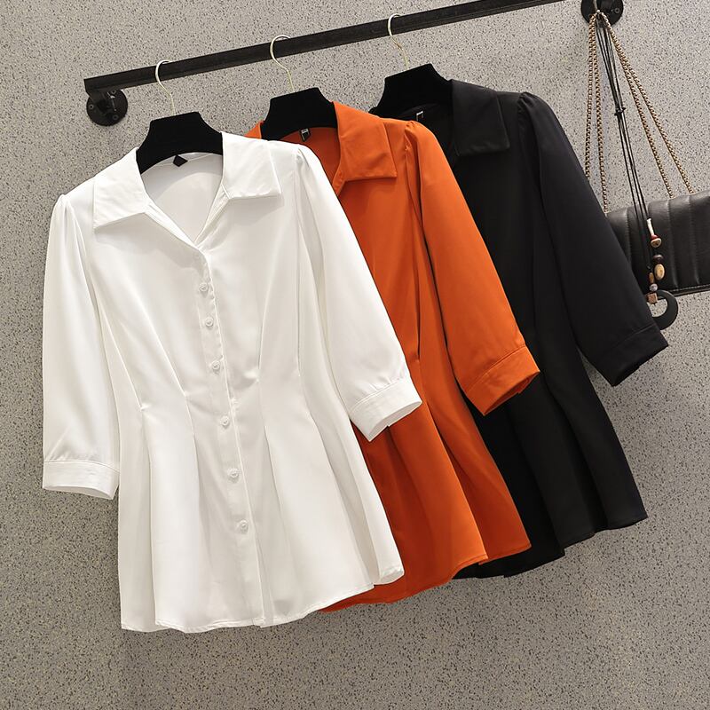 大きいサイズの婦人服 2023 春服脂肪姉妹新しいファッション無地気質年齢減少シャツポロ襟シャツ女性 大きめサイズ スプリング 春物 ソリッドカラー 8884199945469465