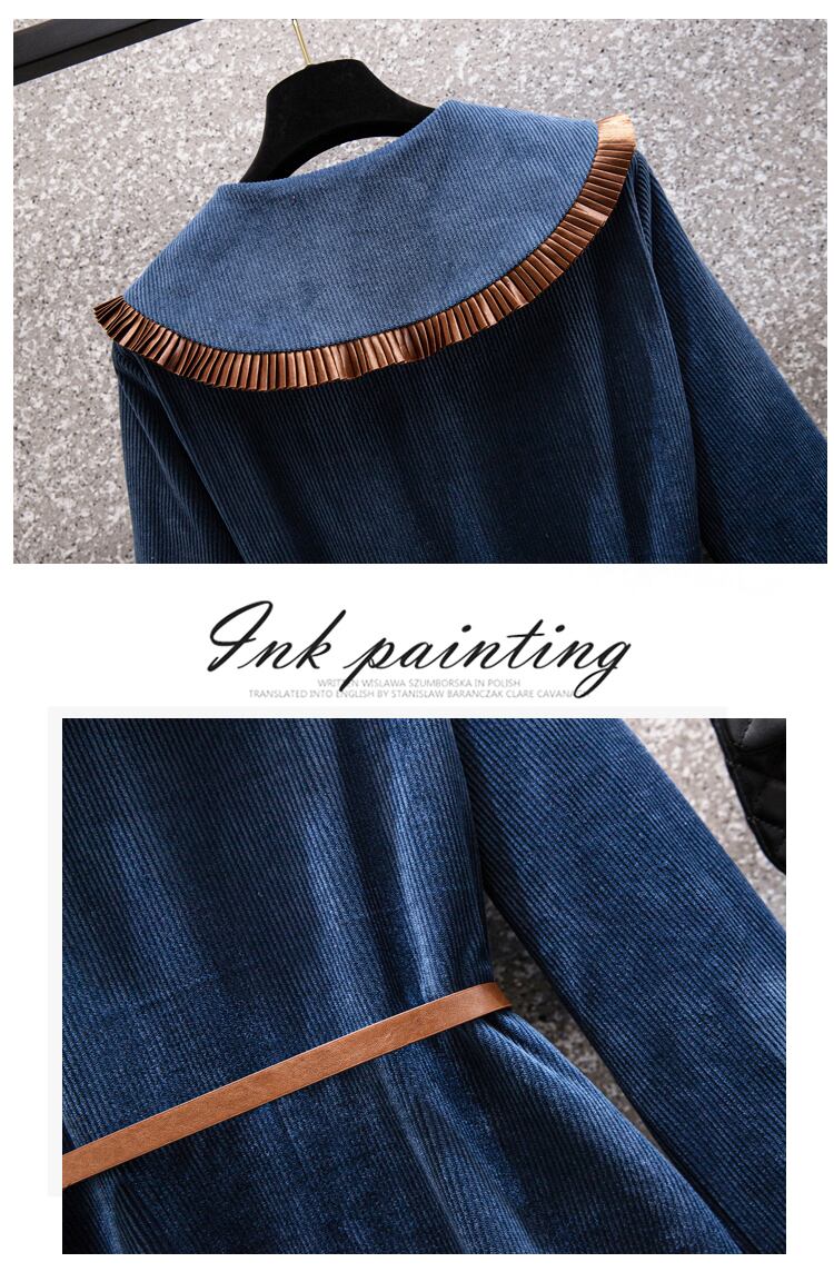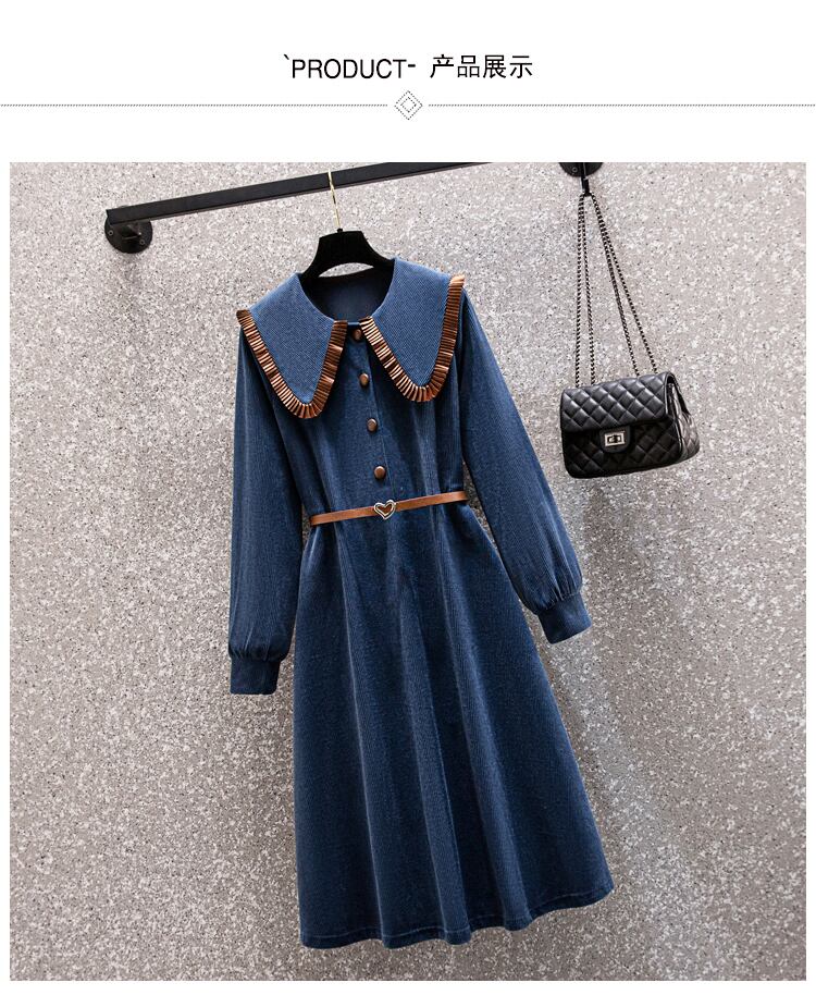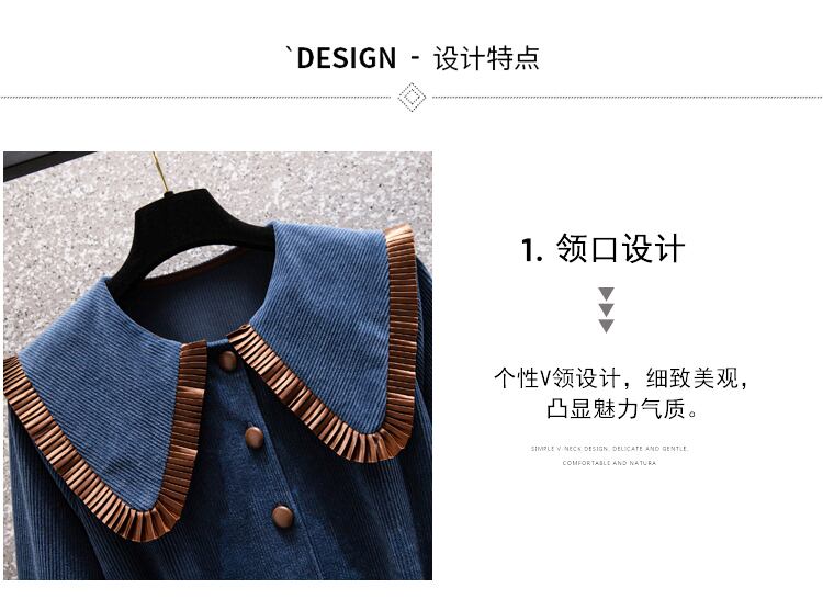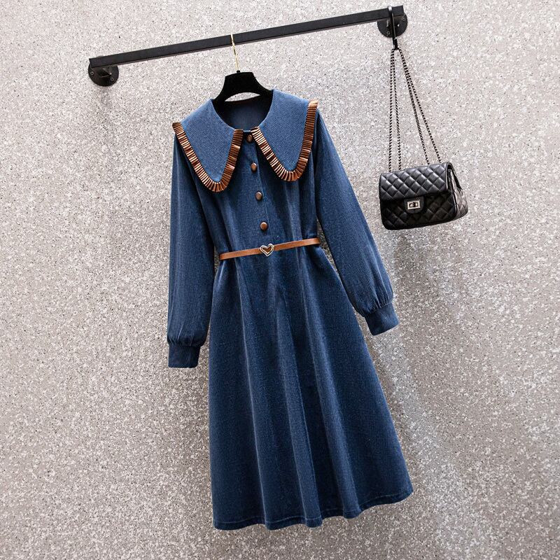 プラスサイズの婦人服 2023 トレンディな女性の春の新しい太った姉妹は、より薄く見え、年齢を減らして厚くなったコーデュロイの人形の襟のドレス 大きめサイズ スプリング 春物 888416897041371