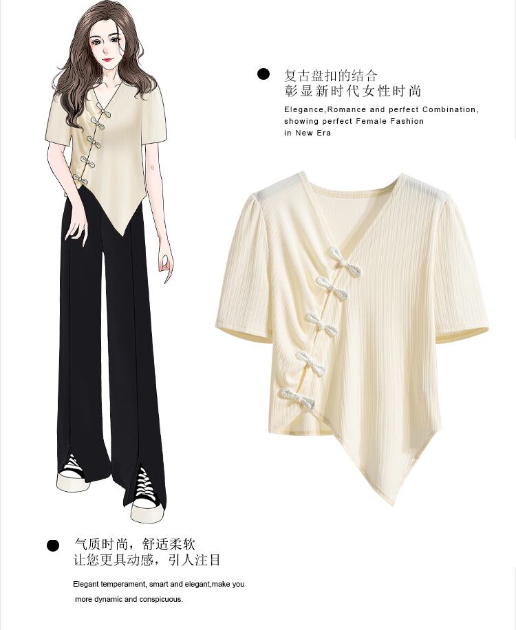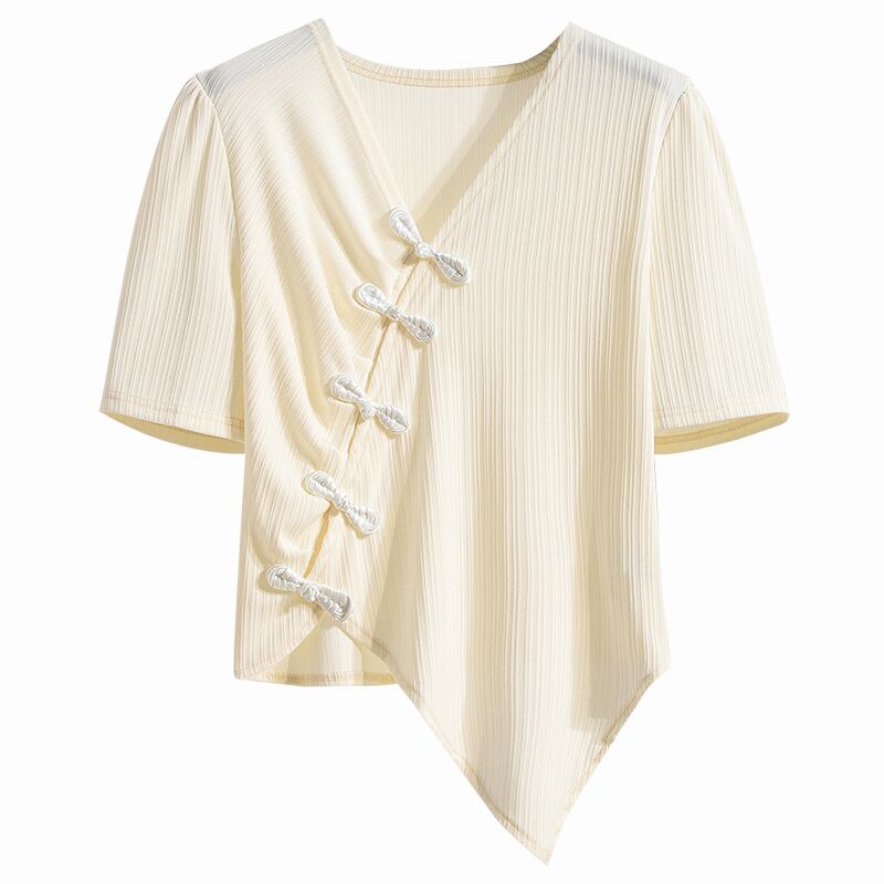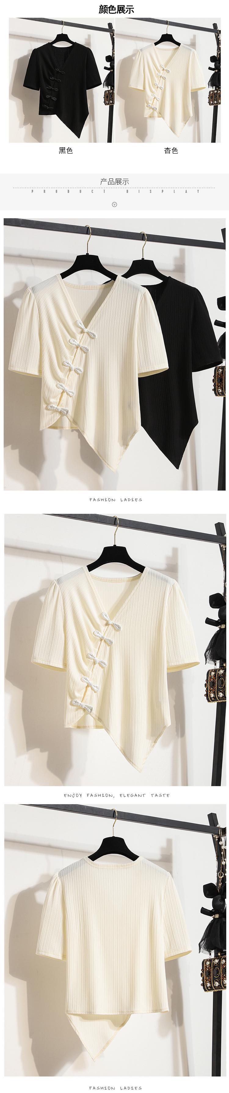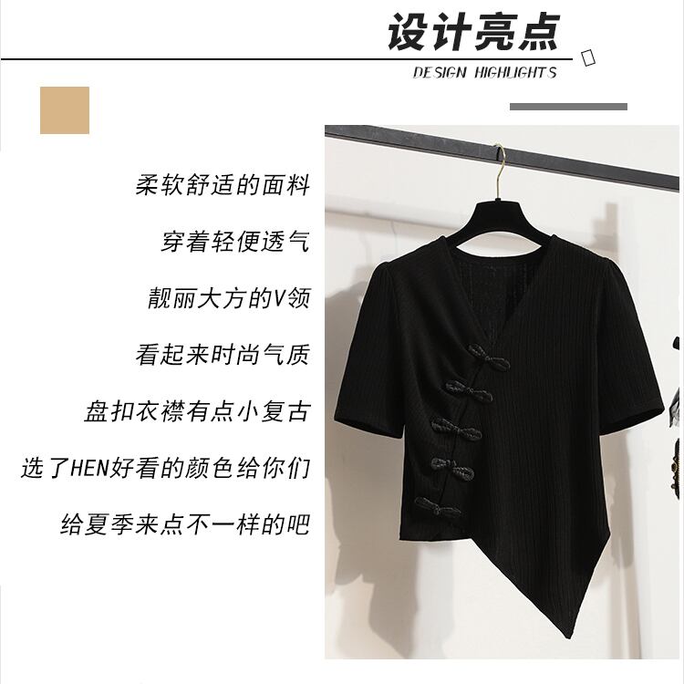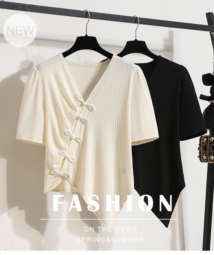 大きいサイズの婦人服 2023 夏服ファット シスターズ新しいスタイル eign スタイル バックル デザイン不規則なトップ半袖 T シャツ 大きめサイズ サマー 夏物 Tシャツ 8884196178368592