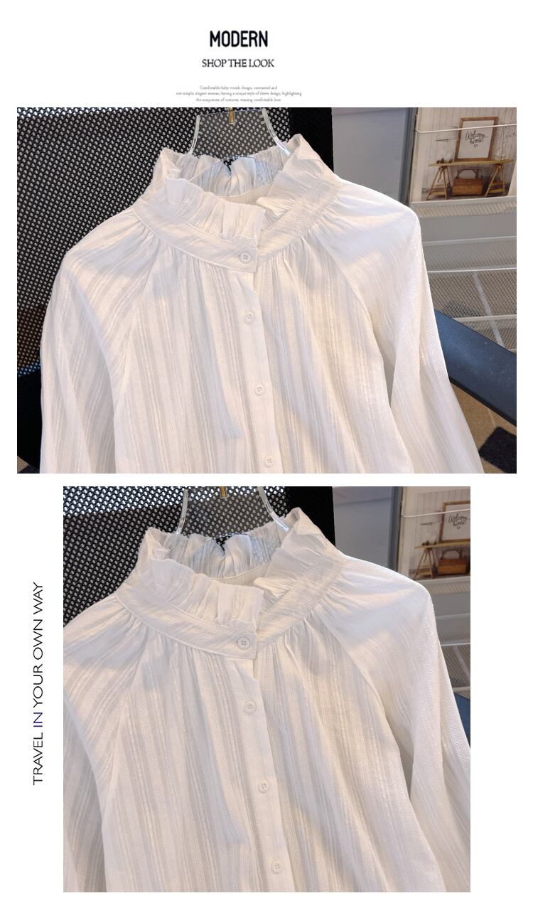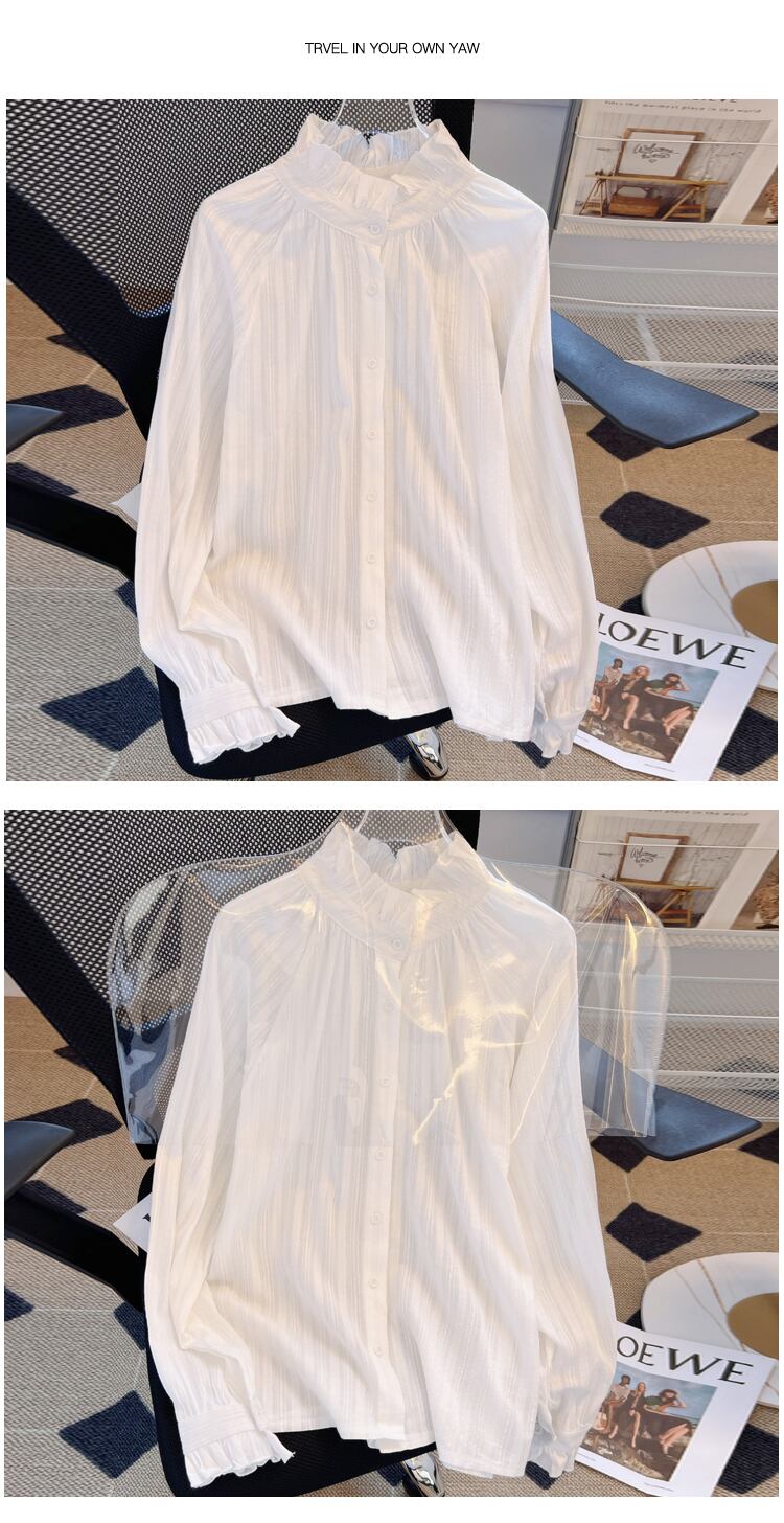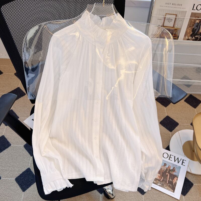 大きいサイズの婦人服 2023 春の新しいスタイルのファット シスター デザイン センス ニッチ長袖ウッド イヤー エッジ eign スタイル ハーフ ハイ カラー シャツ ロング 大きめサイズ スプリング 春物 8884169577801827