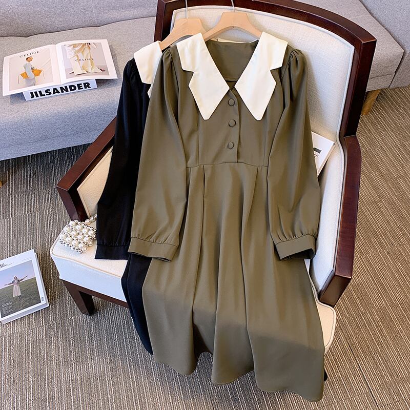 プラスサイズの婦人服 2023 ファットシスター春の新バージョンのフレンチスタイル痩身カラーウエスト人形の襟のドレスの女性 大きめサイズ スプリング 春物 8884185304067440