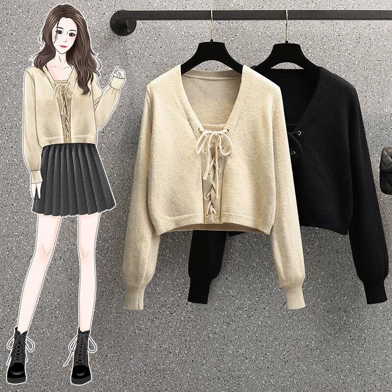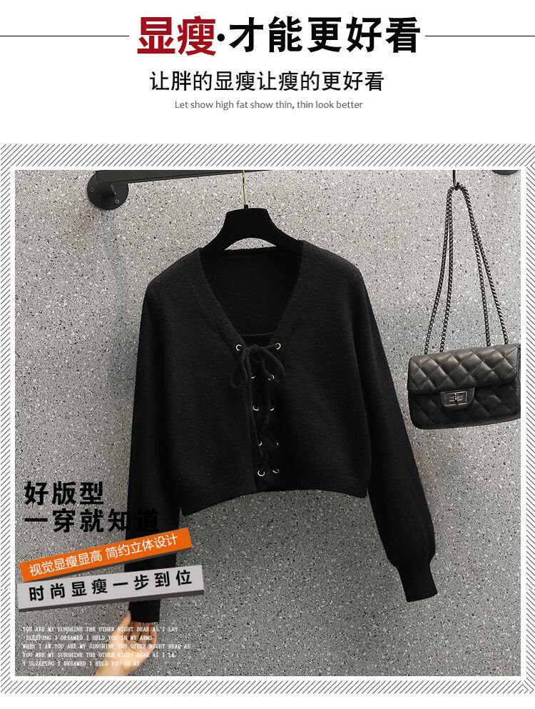 プラスサイズの婦人服 2023 トレンディな女性の春の新しいスタイルの太った姉妹ファッション気質巾着ウエスト痩身オールマッチニットセーター 大きめサイズ スプリング 春物 8884165731036701