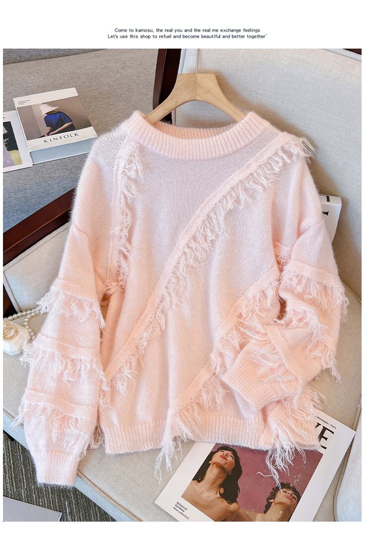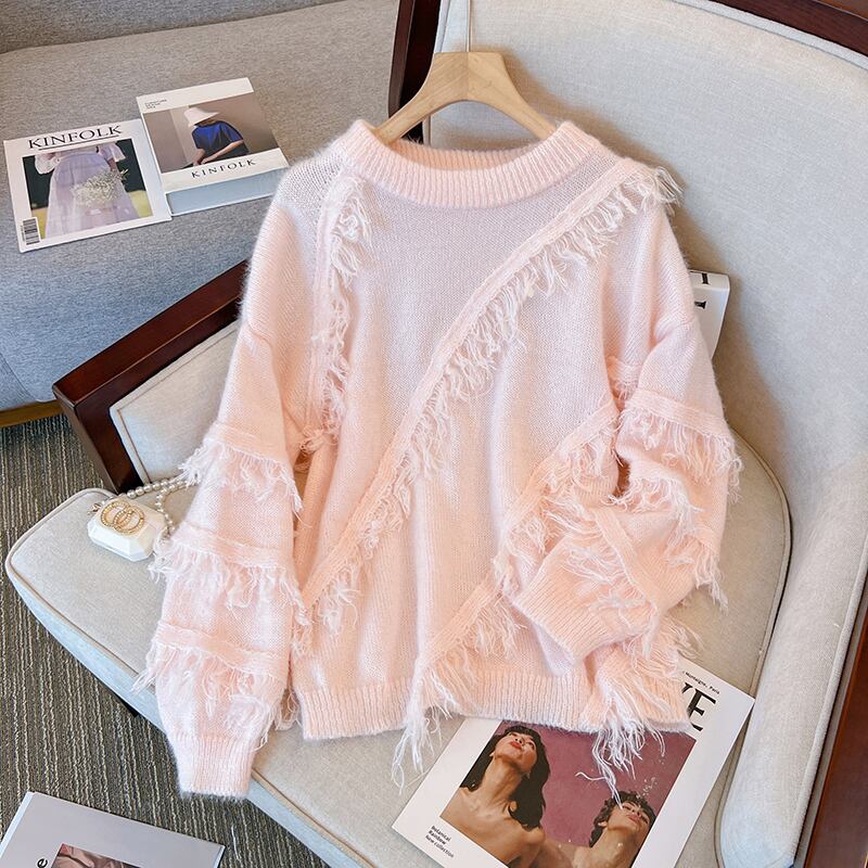 プラスサイズの婦人服 2023 ファットシスター春の新しいソフトモチモチワックス tel 怠惰な風トップカバー肉デザインセンスセーター 大きめサイズ スプリング 春物 8884182155987810