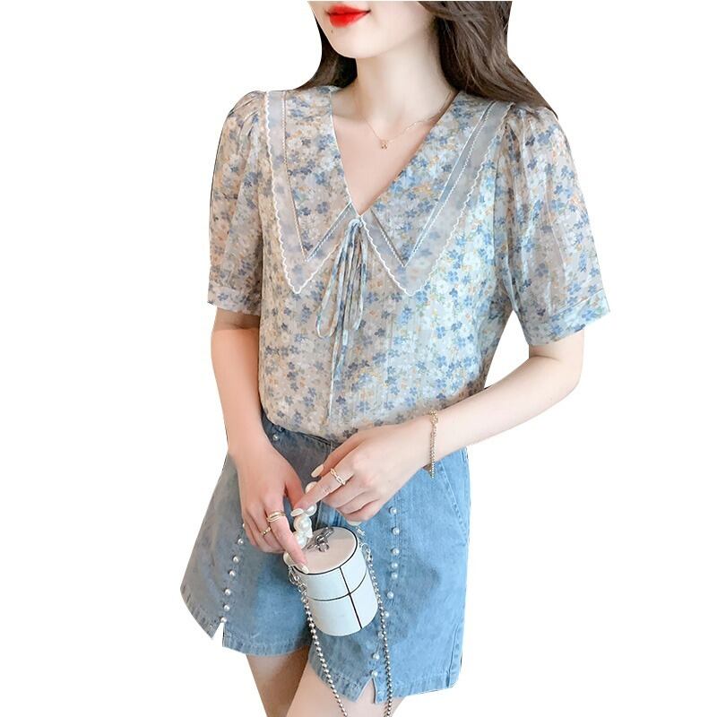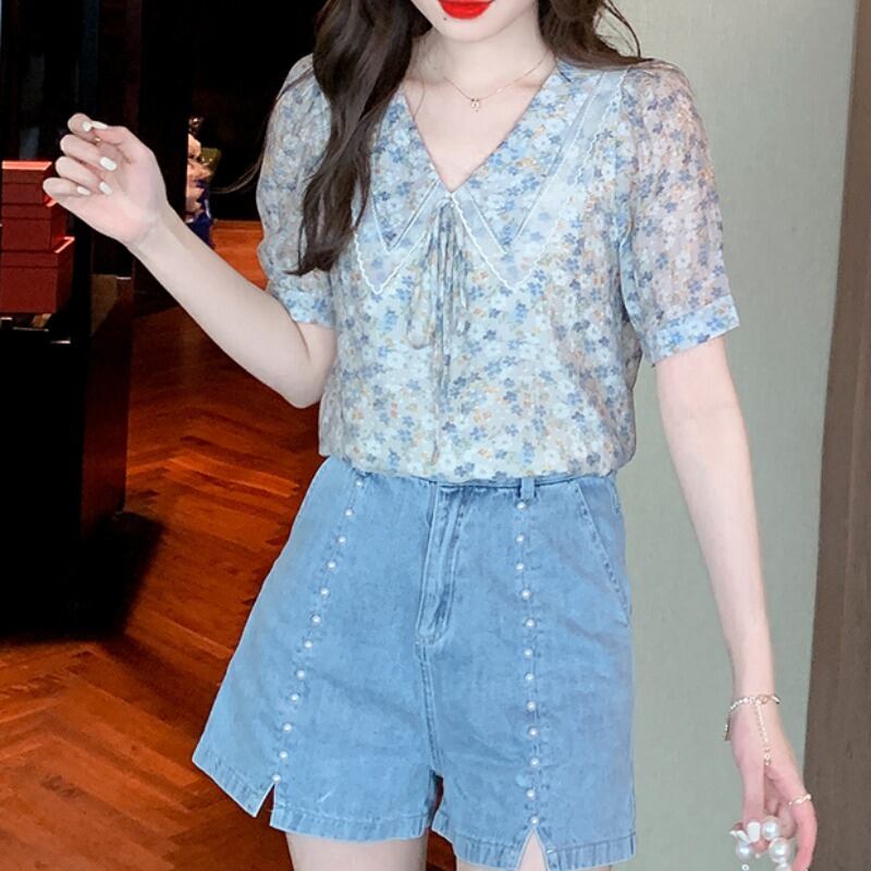 プラスサイズの婦人服 2023 夏の新しいファットシスターデザインセンスフレンチ気質 V ネックシックなオールマッチトップス女性 大きめサイズ サマー 夏物 Vネック 8884182380063722