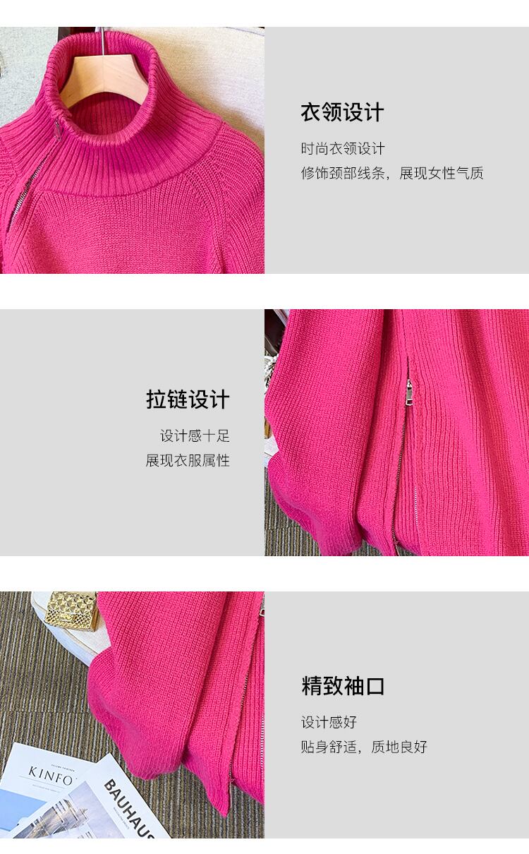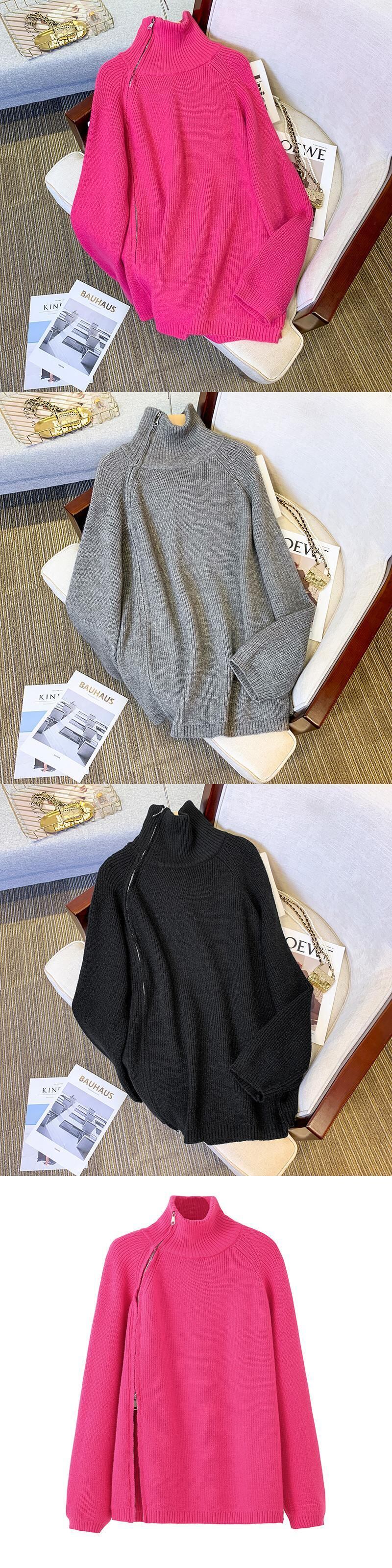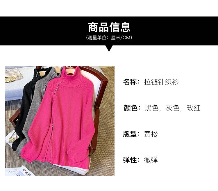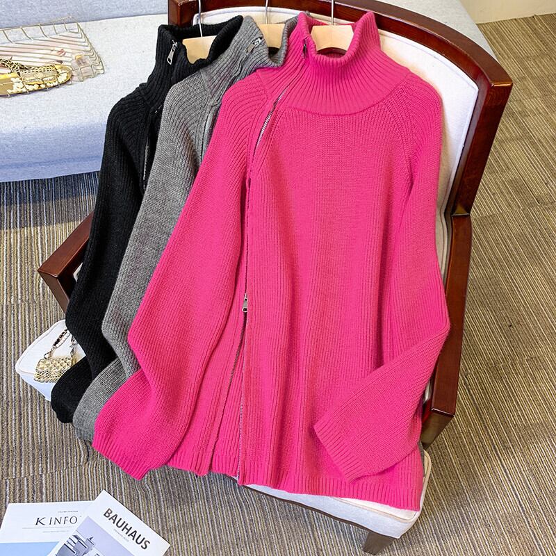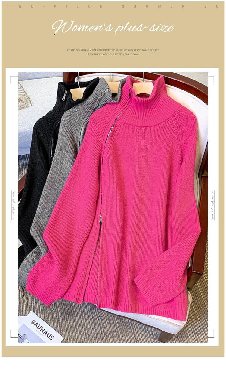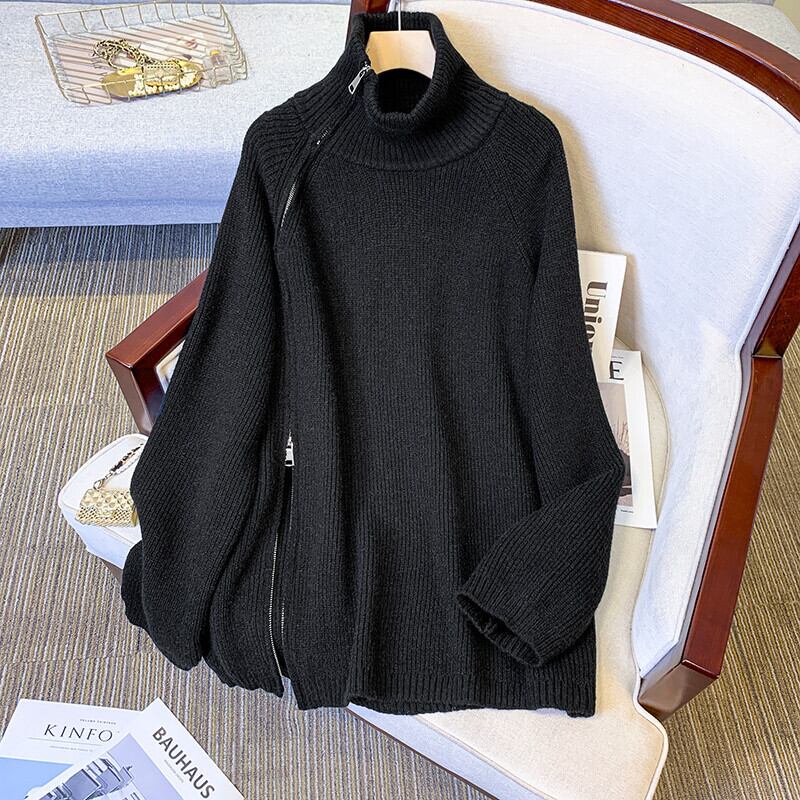 プラスサイズの婦人服 2023 ファットシスター春の新高襟ジッパーニット底入れシャツ緩いスリムセーター女性 大きめサイズ スプリング 春物 8884145556039578