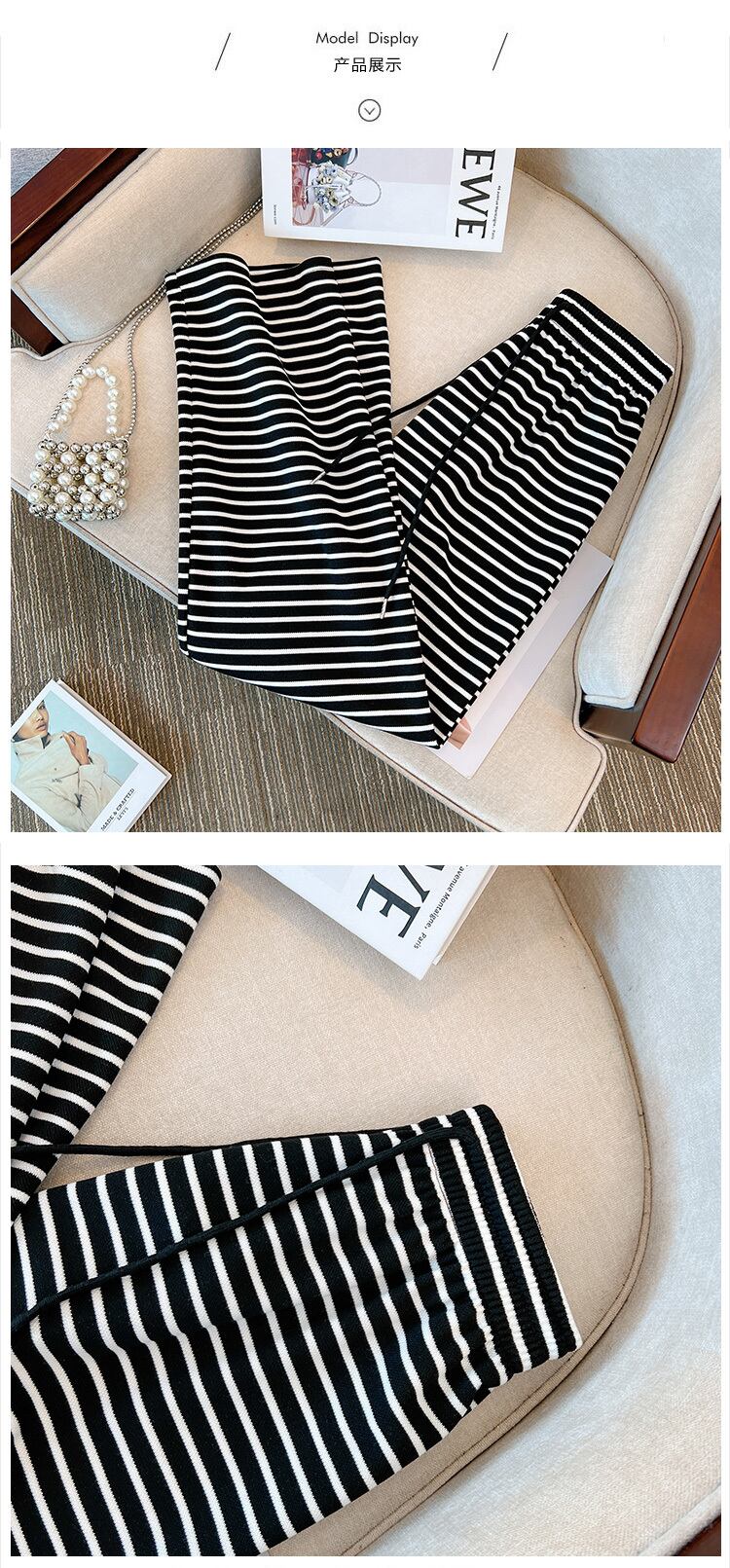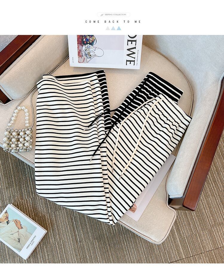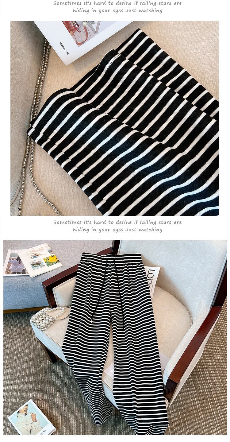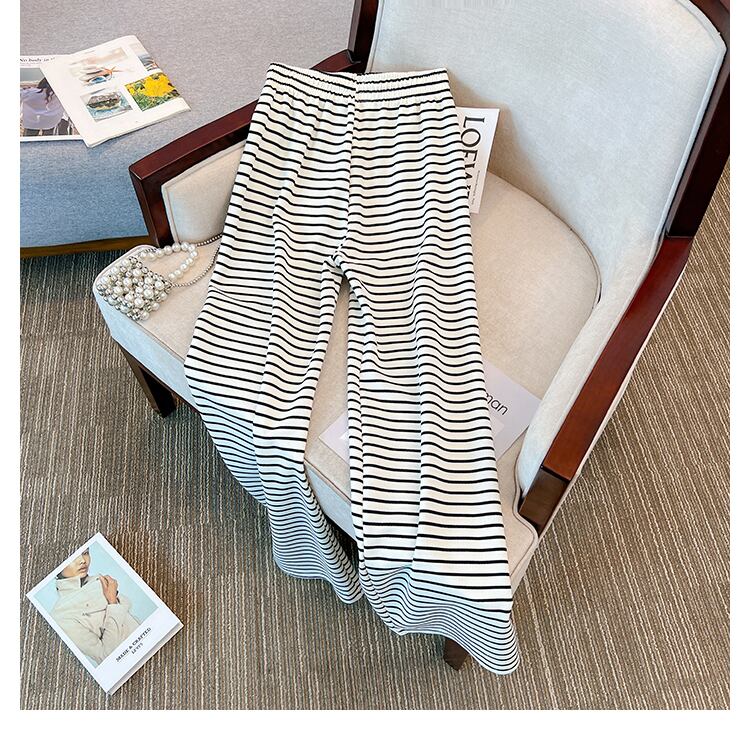 プラスサイズの婦人服 2023 春の新しいスタイルの太った姉妹は、薄い気質のオールマッチストライプのヒットカラーのカジュアルなワイドレッグパンツの女性に見えます 大きめサイズ スプリング 春物 8884192061104905