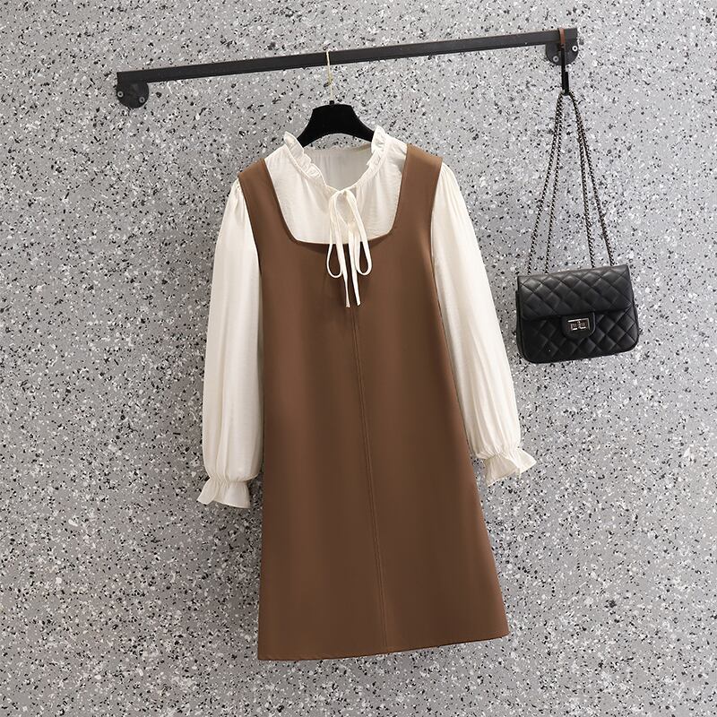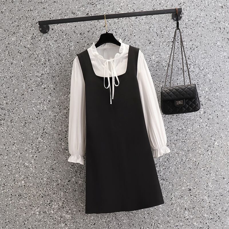 プラスサイズの婦人服 2023 春の新しいファットシスターオールマッチ無地シャツファッションストラップドレス 2 点セット 大きめサイズ スプリング 春物 ソリッドカラー 8884185696043699