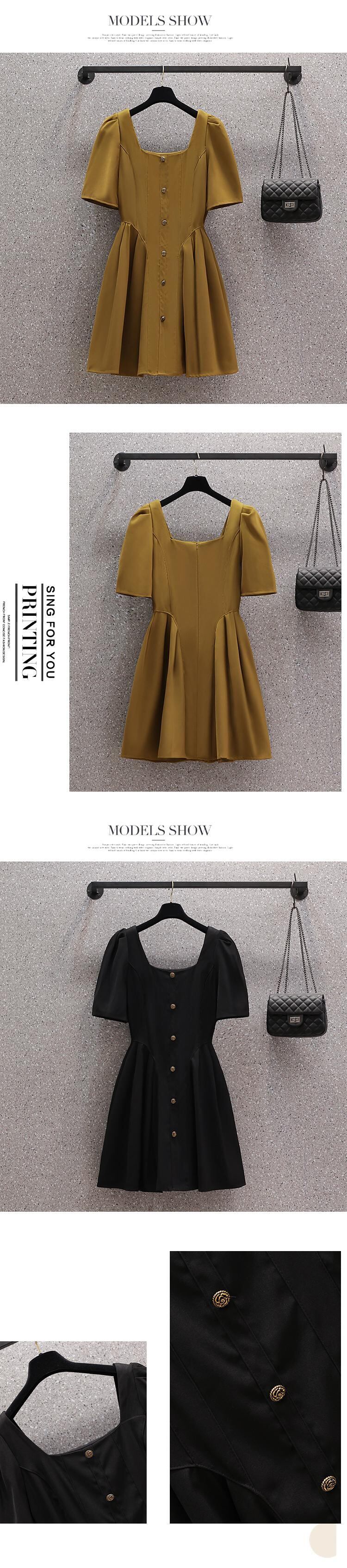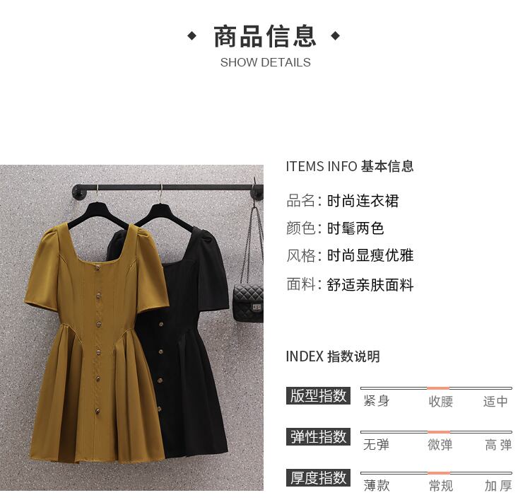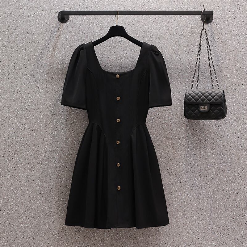 プラスサイズの婦人服 2023 夏の新しい脂肪姉妹フレンチ気質痩身ニッチ ヘップバーン スタイル スクエア カラー ドレス 大きめサイズ サマー 夏物 スクウェア 8884146559439791