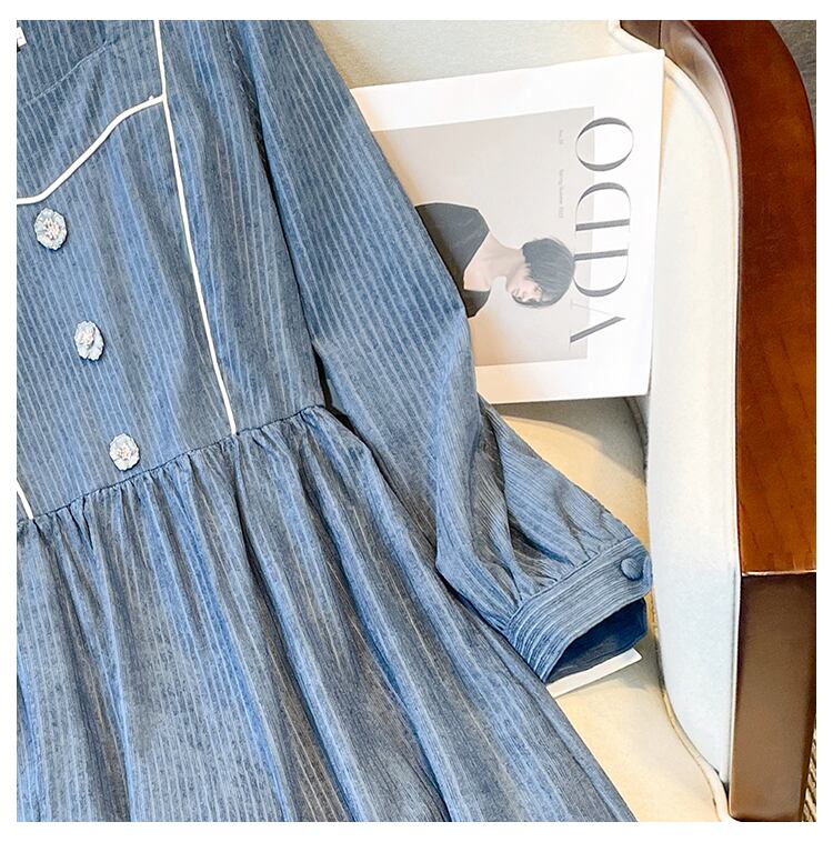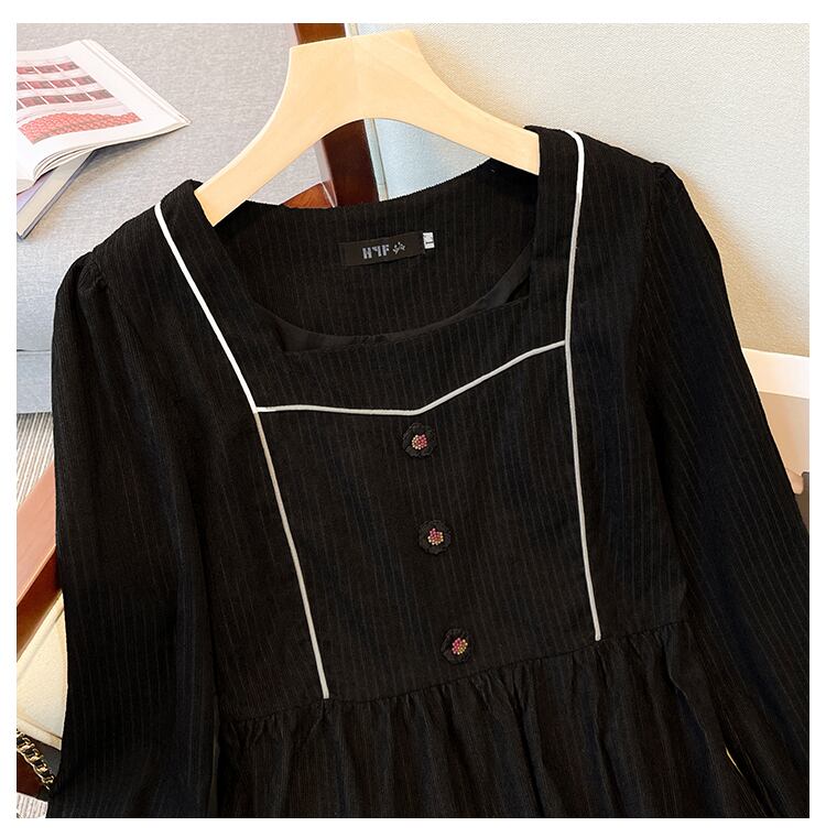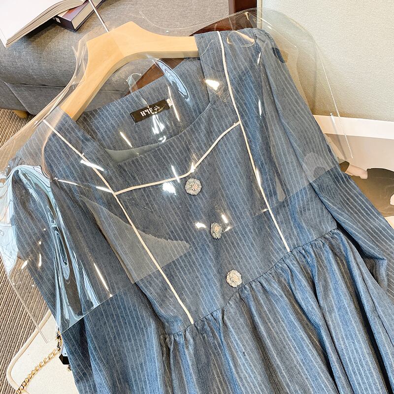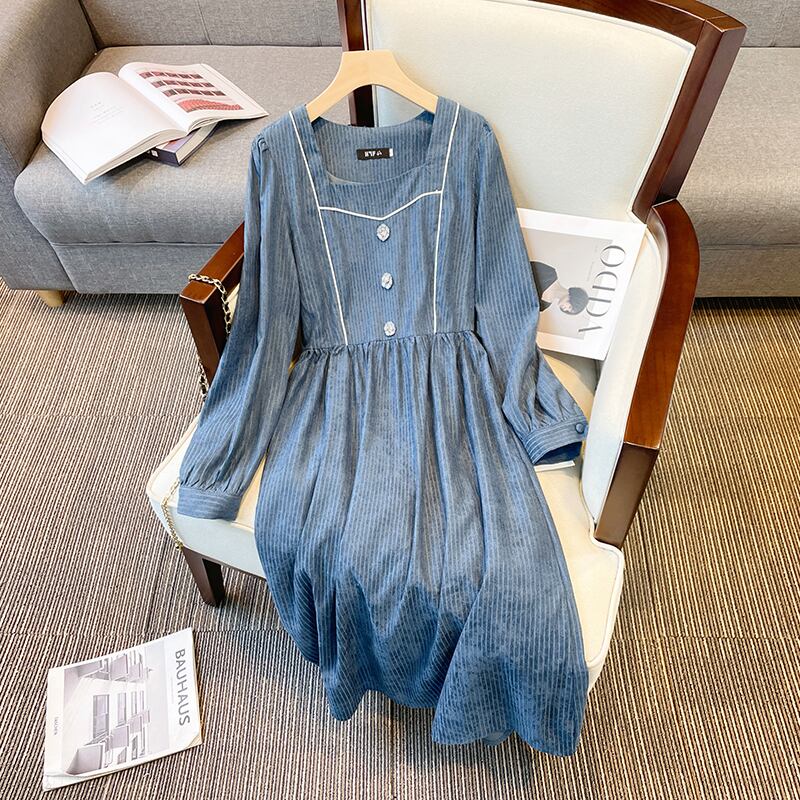 プラスサイズの婦人服 2023 ファットシスター春の新しい eign スタイルの年齢を減らすヘップバーンスタイルのスクエアカラーのスリムな長袖のドレスの女性 ロング 大きめサイズ スプリング 春物 スクウェア 8884154785810069