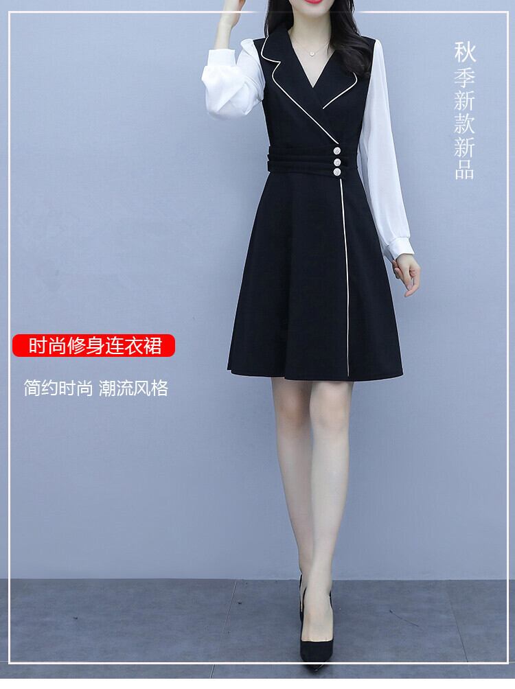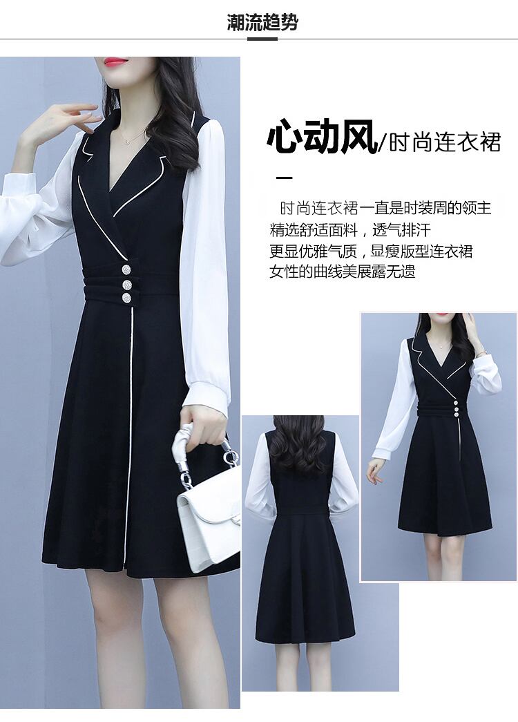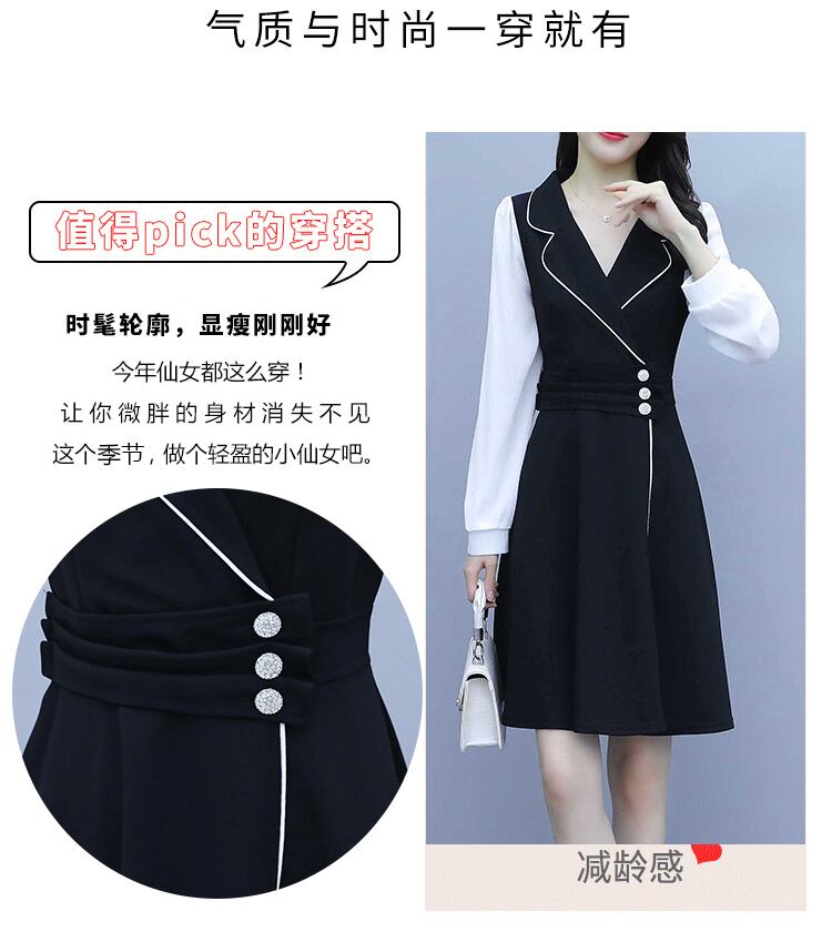 プラスサイズの婦人服 2023 春服脂肪姉妹新しいフレンチスーツの襟痩身腹カバースプライシング長袖ドレス ロング 大きめサイズ スプリング 春物 8884190466053641