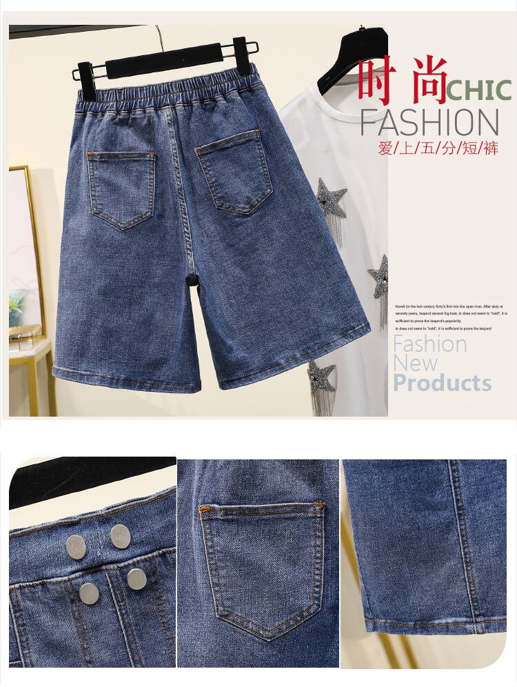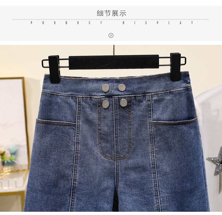 プラスサイズの婦人服 2023 夏の新しいファットシスター弾性ウエスト弾性ハイウエストスリム気質 5 点ジーンズ エラスティック 伸縮 大きめサイズ サマー 夏物 8884188993080229