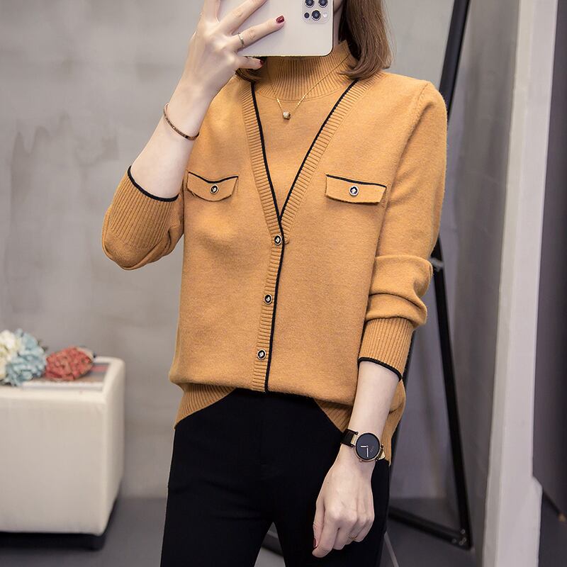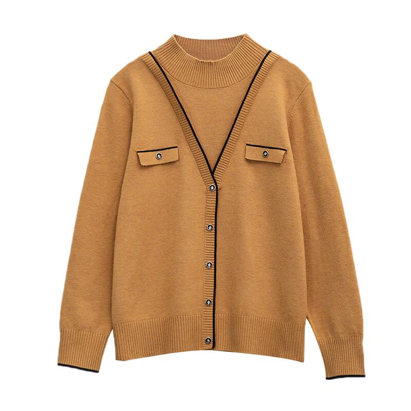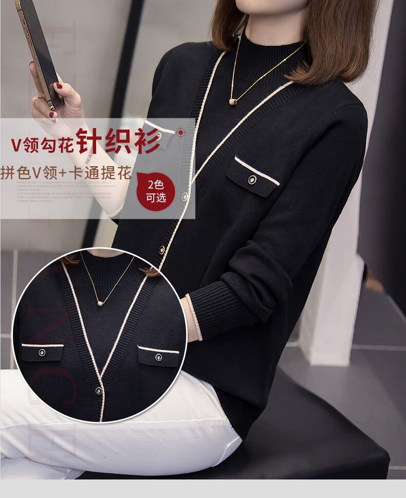 大きいサイズの婦人服 2023 春の新しいファット シスター シックなフェイク ツーピース長袖ハーフ ハイ カラー デザイン セーター ロング 大きめサイズ スプリング 春物 8884151949384980