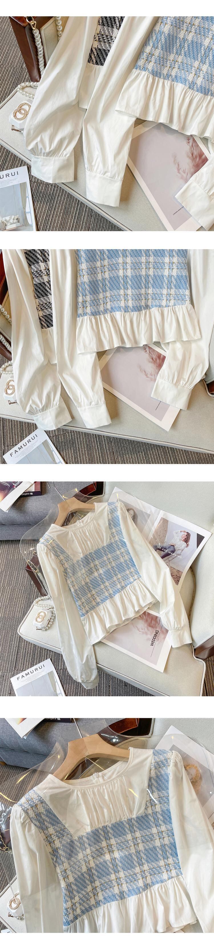 プラスサイズの婦人服 2023 トレンディな女性の春の新しい太った姉妹パッチワーク甘い格子縞のシャツ eign スタイル ジーンズ 2 点セット 大きめサイズ 大人ガーリー スウィート キュート カジュアル スプリング 春物 888419101419141
