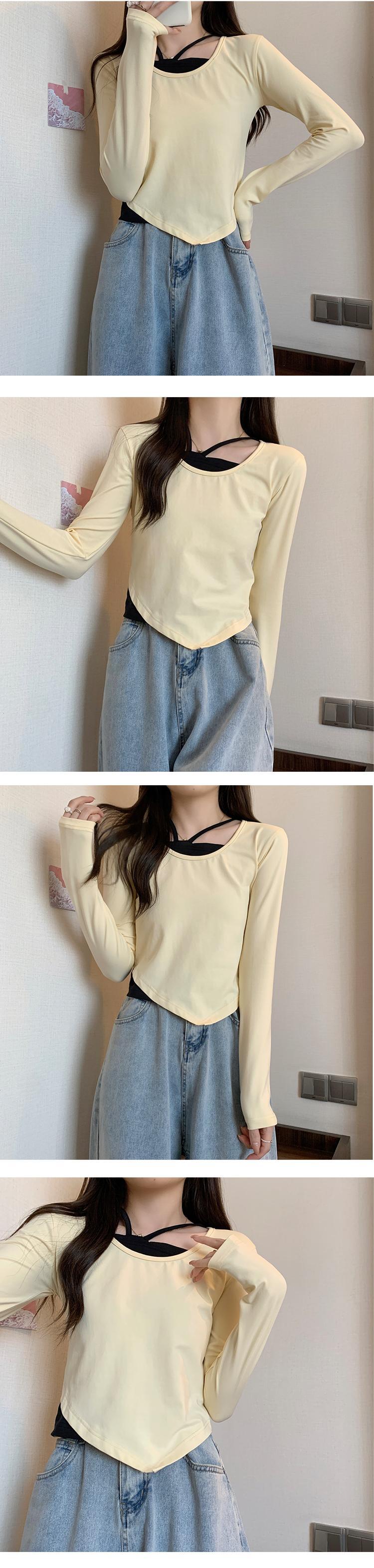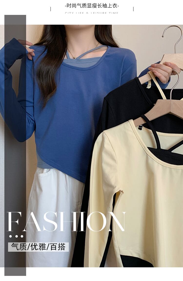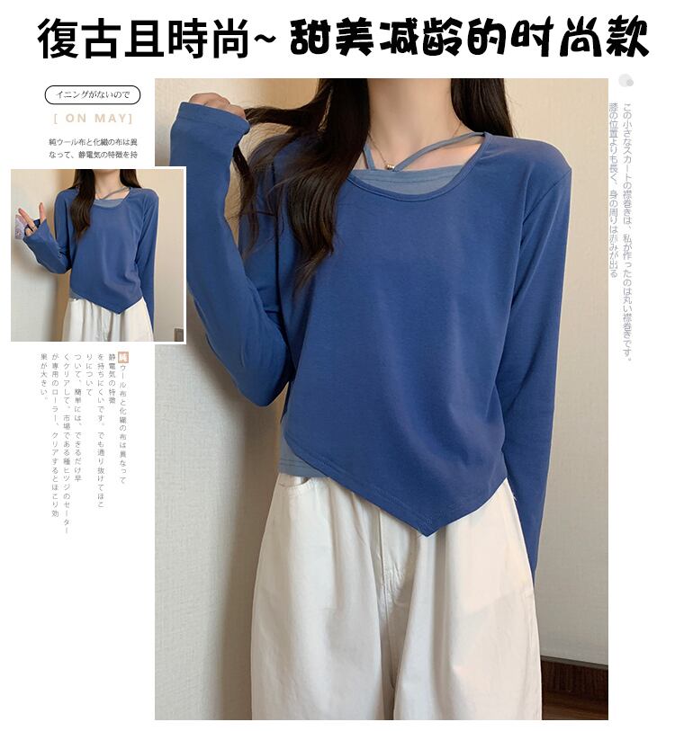 大きいサイズの婦人服 2023 春の新しいファット シスター デザイン センス ニッチ フェイク ツーピース 長袖 不規則なトップ 女性 ロング 大きめサイズ スプリング 春物 8884141261568110