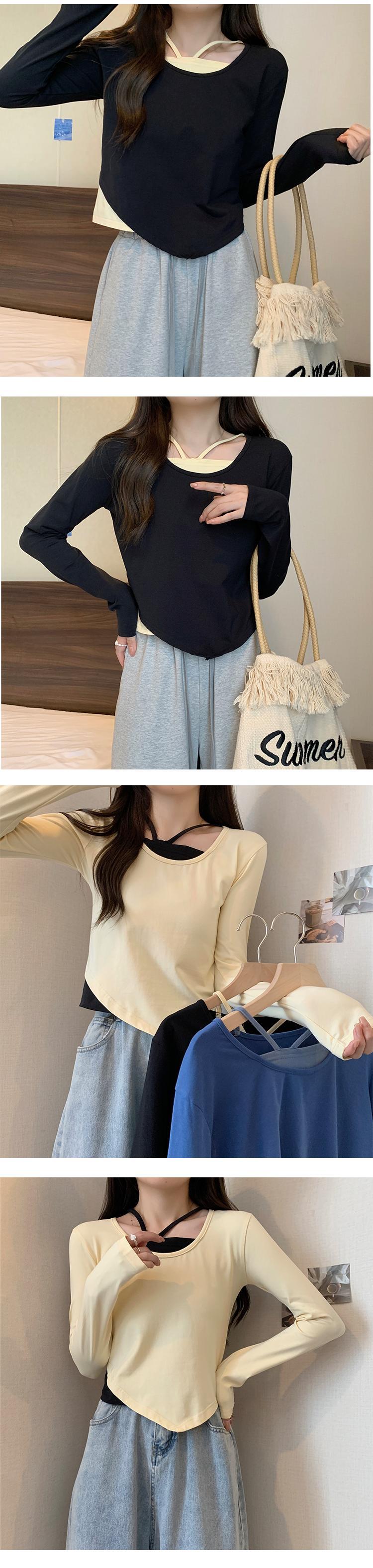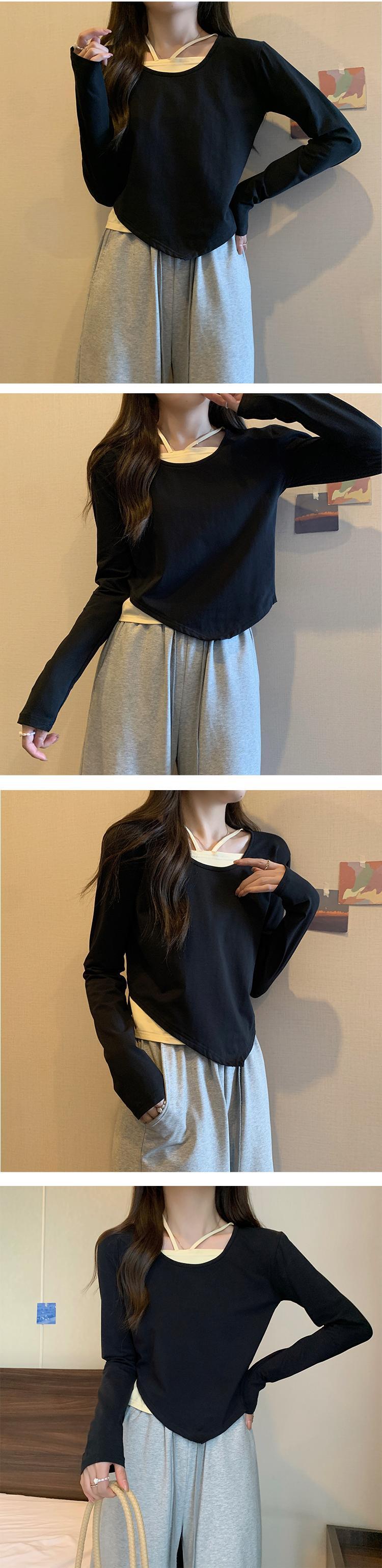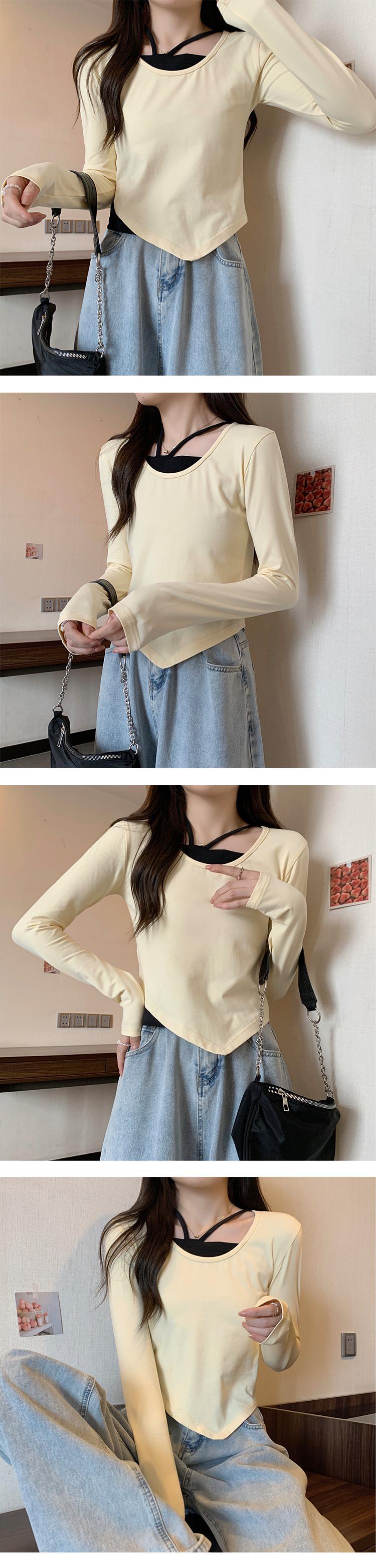大きいサイズの婦人服 2023 春の新しいファット シスター デザイン センス ニッチ フェイク ツーピース 長袖 不規則なトップ 女性 ロング 大きめサイズ スプリング 春物 8884141261568110
