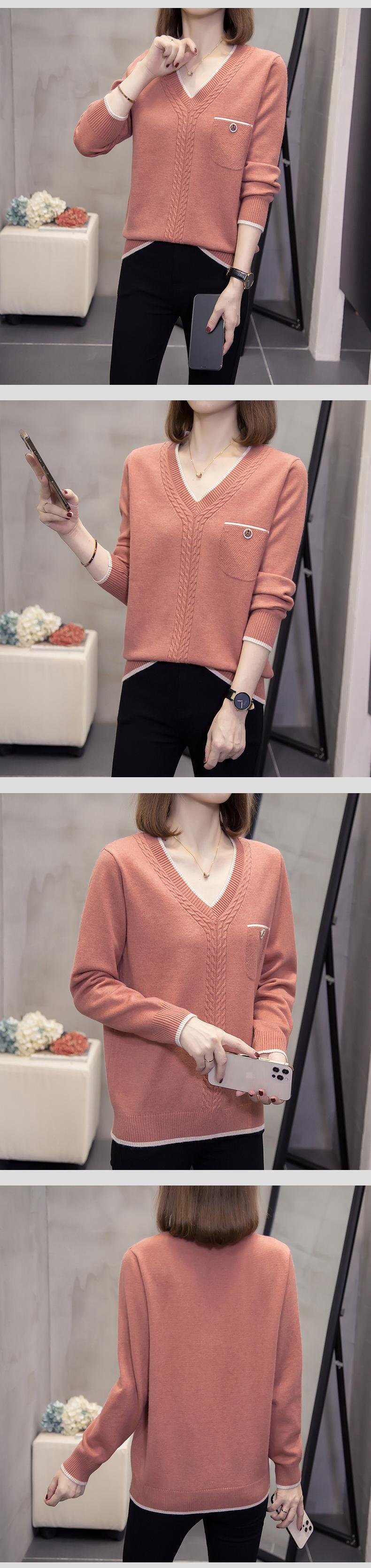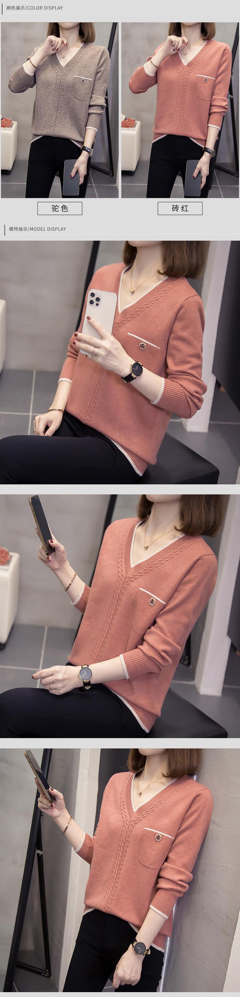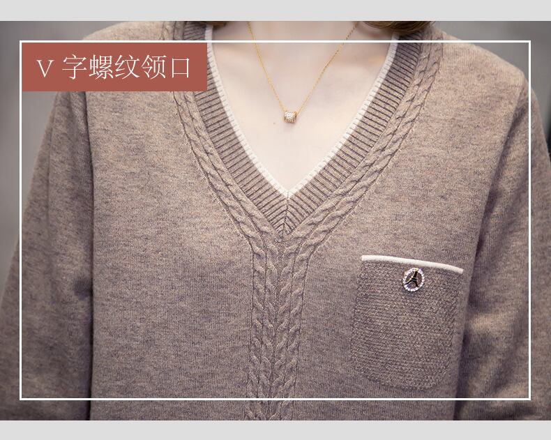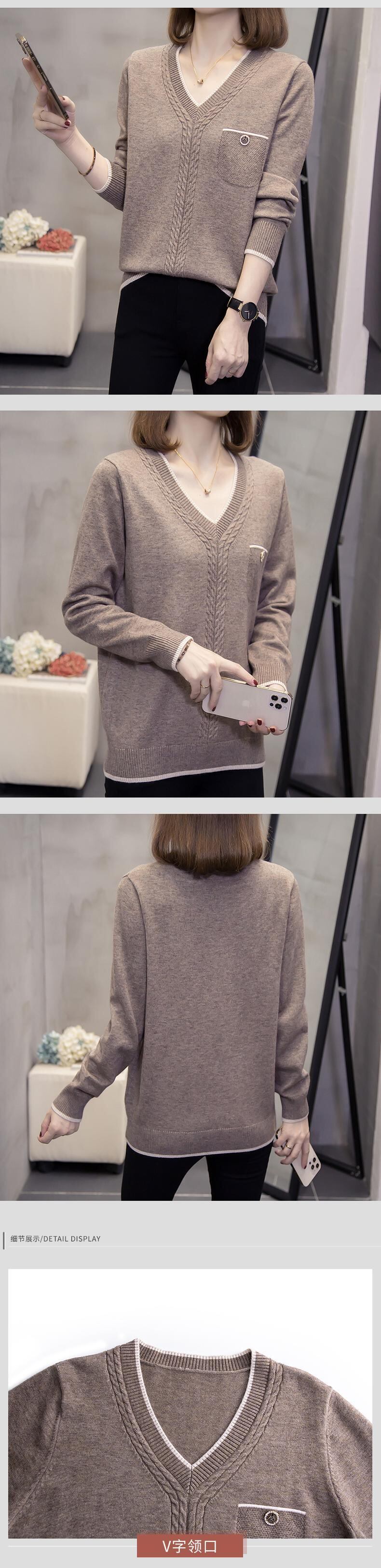大きいサイズの婦人服 2023 春の新しいファットシスター緩い V ネックチェーンリンクオールマッチニッチ長袖ニットセーターの女性 ロング 大きめサイズ スプリング 春物 Vネック 8884159388120316
