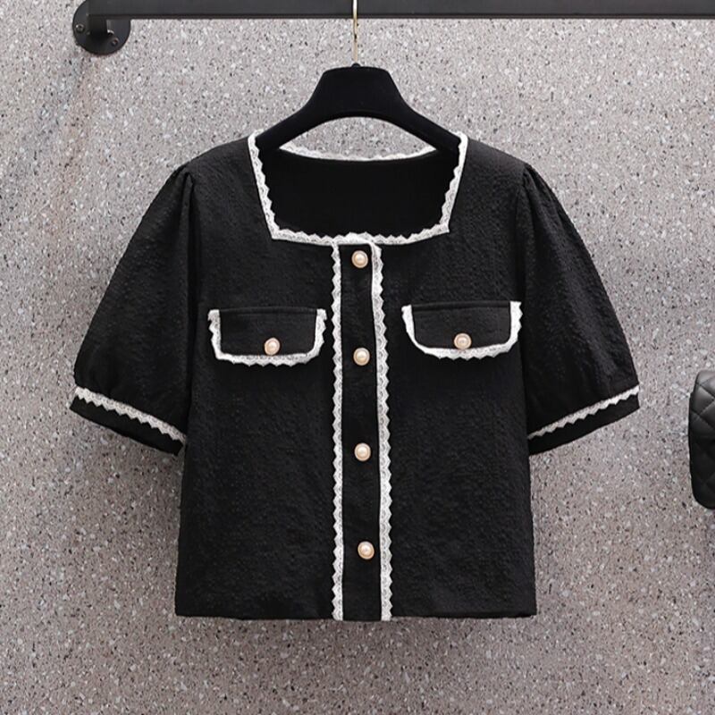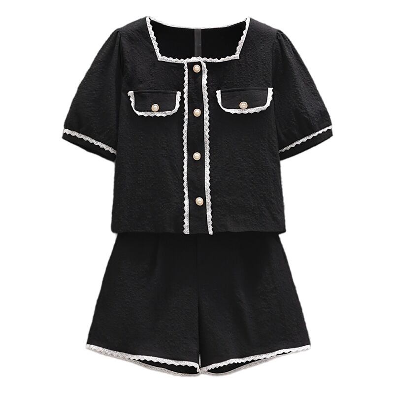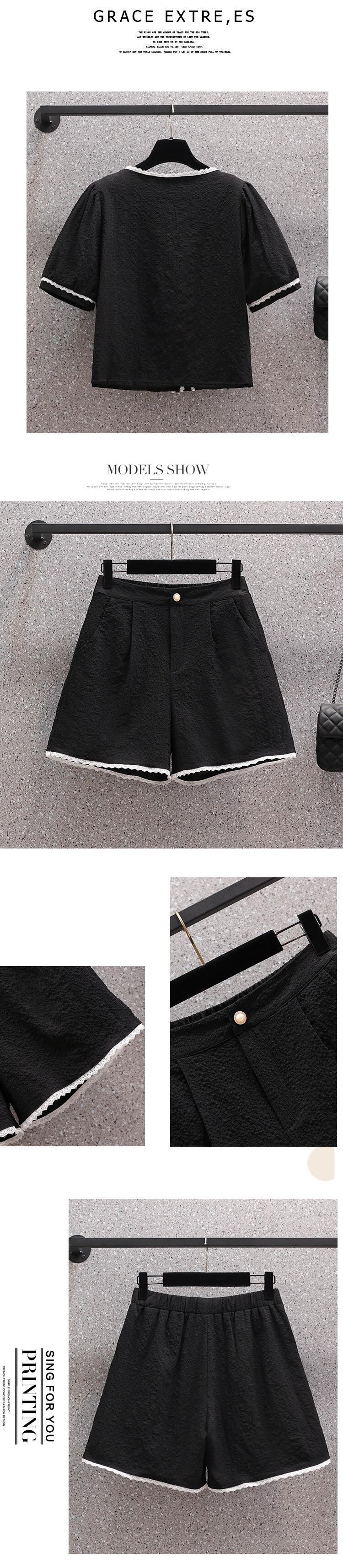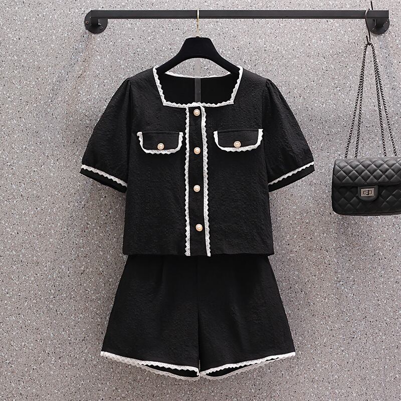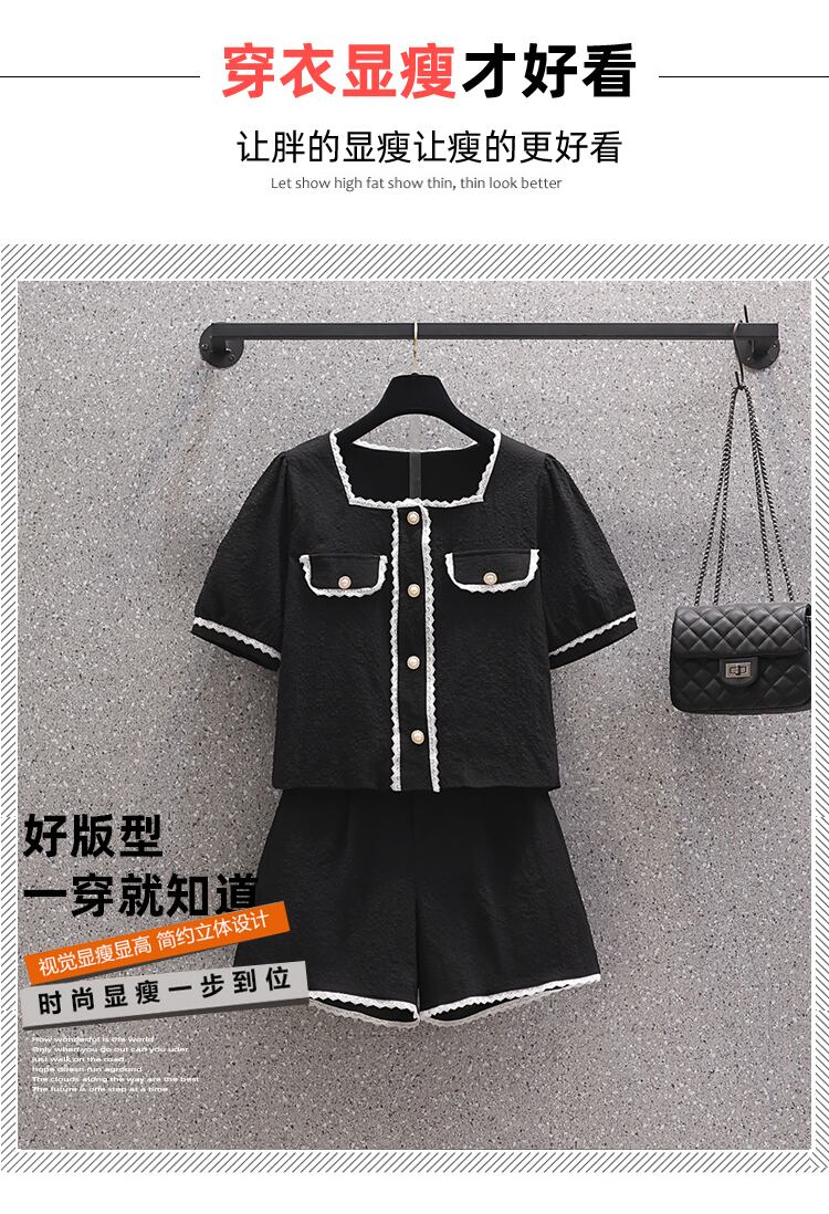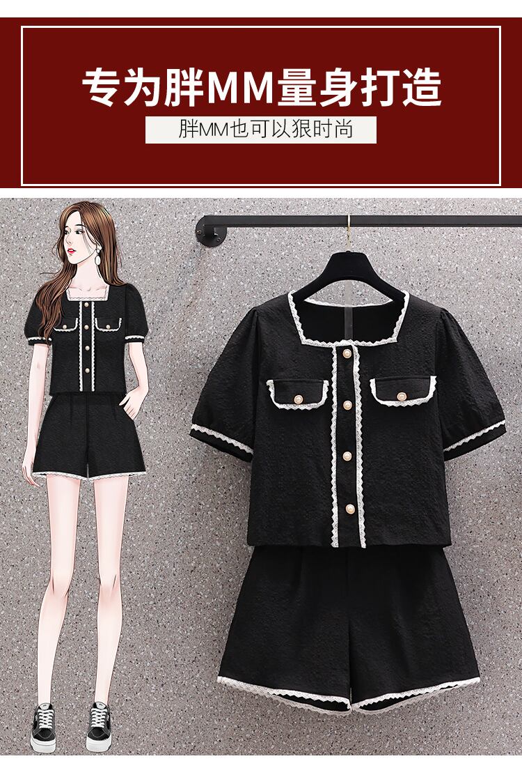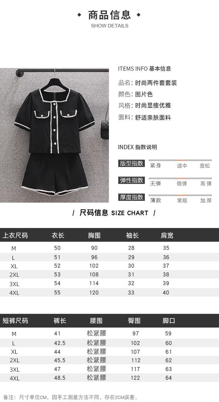プラスサイズの婦人服 2023 夏の新しいファットシスターファッションスクエアカラートップハイウエスト年齢を減らすカジュアルパンツ 2 点セット ハイウェスト 大きめサイズ サマー 夏物 スクウェア 8884155459272531