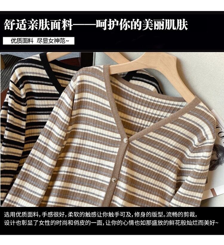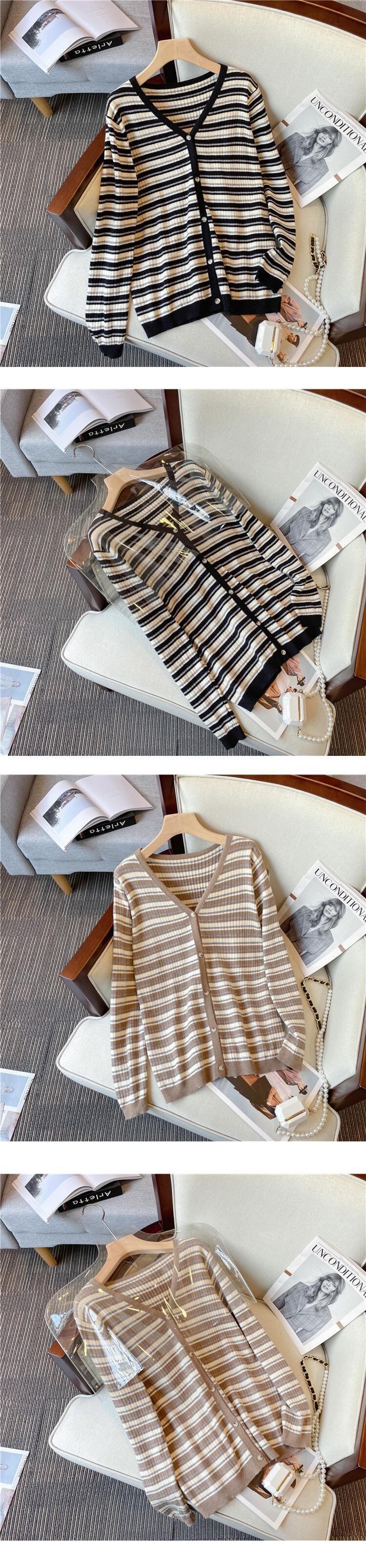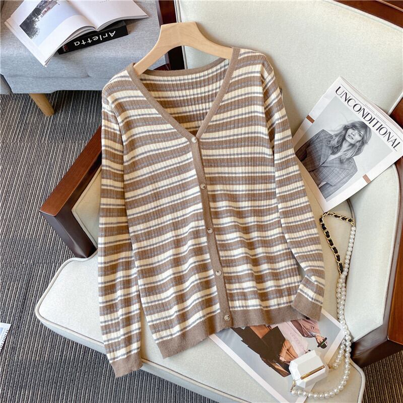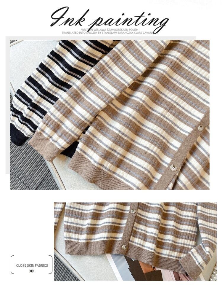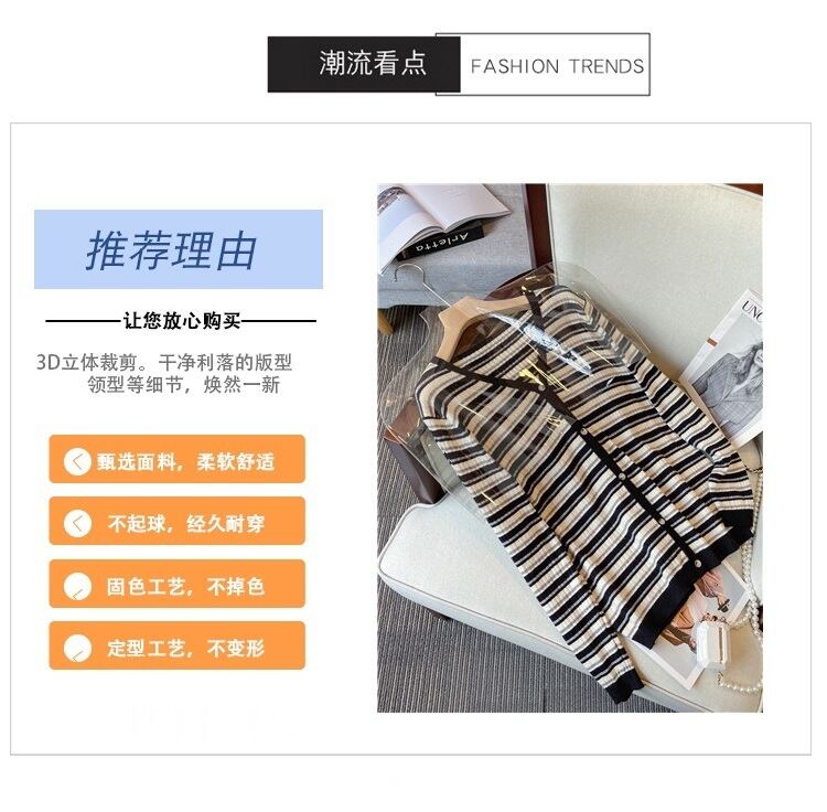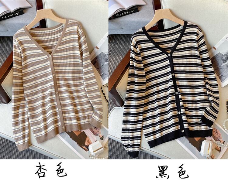 プラスサイズの婦人服 2023 春の新しいスタイルの太った妹は薄くて緩い気質に見えますフレンチストライプのカーディガンニットセーターはお腹を覆っています 大きめサイズ スプリング 春物 8884164675502795