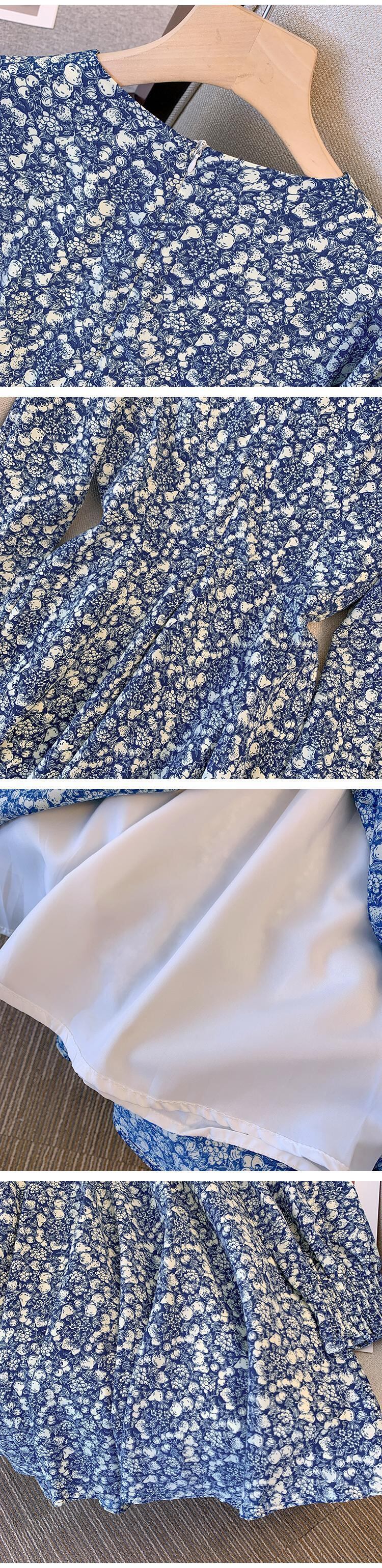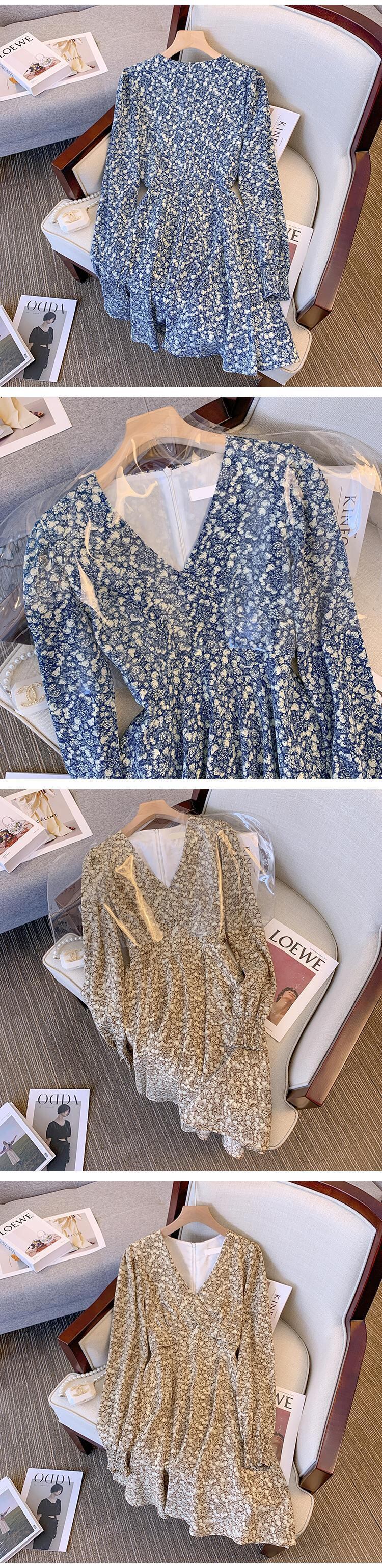 プラスサイズの婦人服 2023 トレンディな女性の春の新しい太った姉妹ウエスト痩身花柄のドレス甘い年齢を減らす V ネックのドレス 大きめサイズ 大人ガーリー スウィート キュート カジュアル スプリング 春物 Vネック 8884163103142145