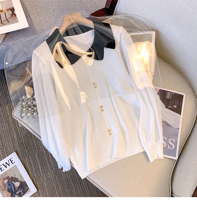 大きいサイズの婦人服2023春の新しいファットシスターフランスの蓮の葉の襟のゆったりした長袖のデザインの気質のトップ ロング 大きめサイズ スプリング 春物 8884124438583509