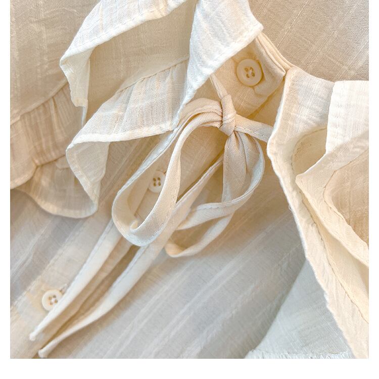 大きいサイズの婦人服は2023年春の新しい太った姉妹の気質のすべての試合の蓮の葉の襟のスリムなパフスリーブの年齢を減らすシャツです 大きめサイズ スプリング 春物 8884159160157809
