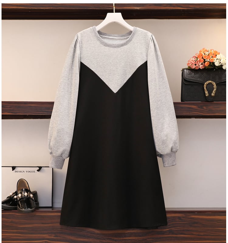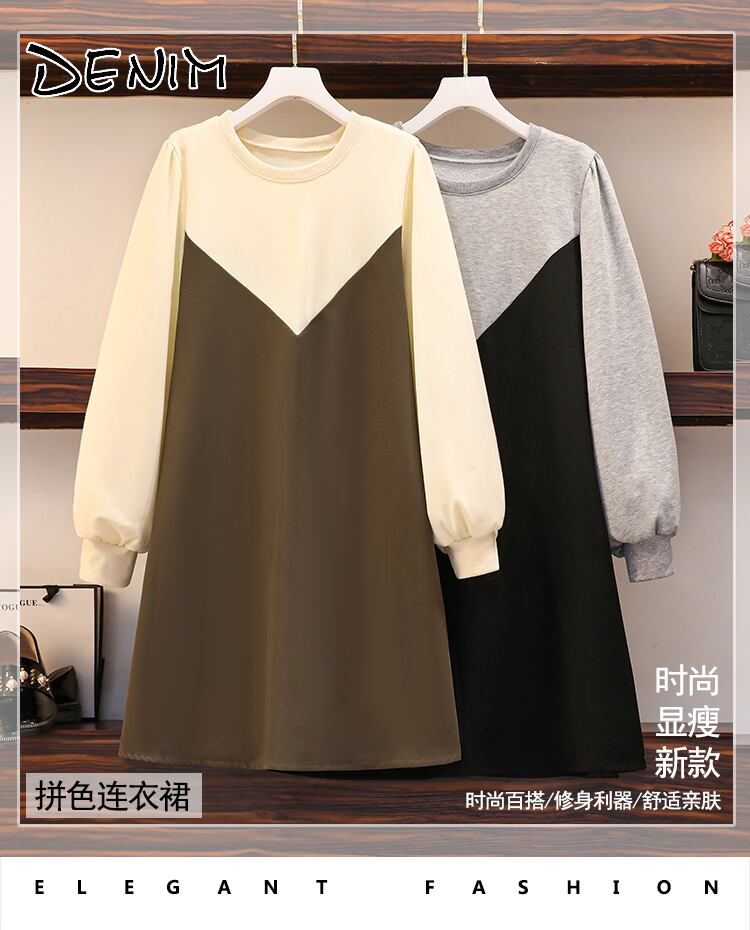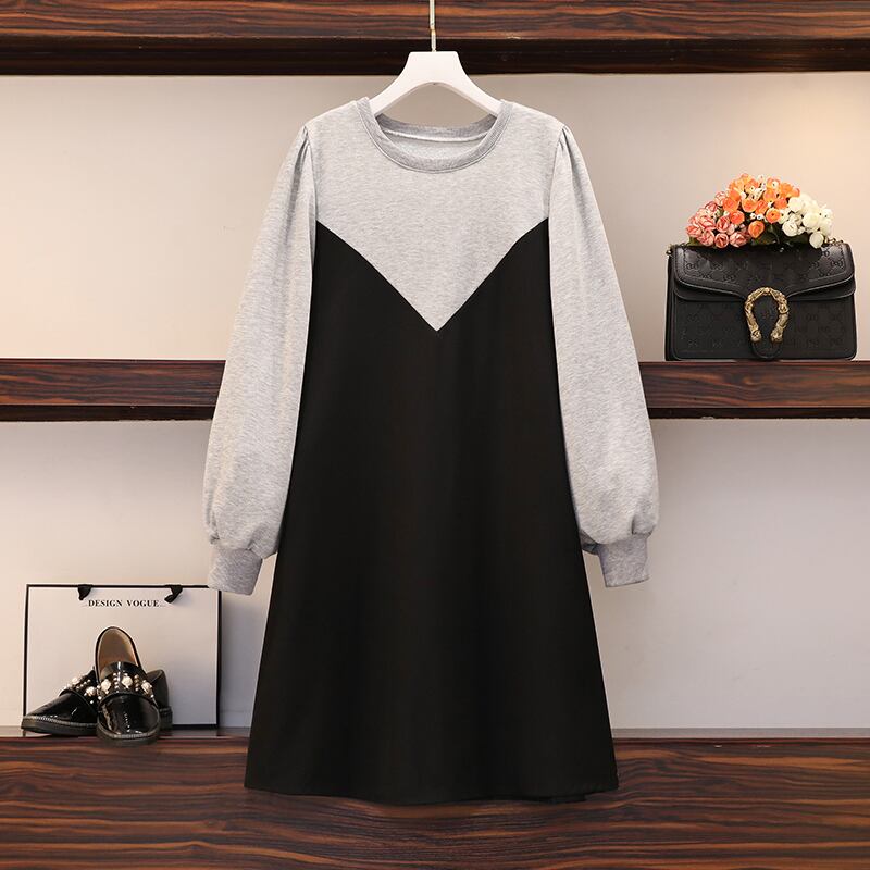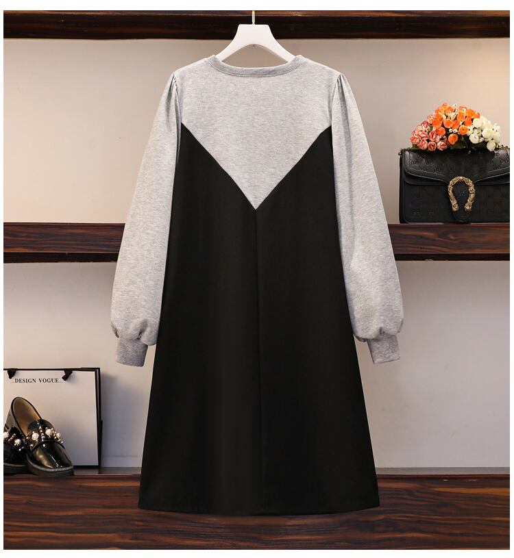 プラスサイズの婦人服 2023 トレンディな女性の春の新しいファットシスターファッションスプライシングカジュアルルーズスリムミッドレングスドレス 大きめサイズ スプリング 春物 8884129849140256