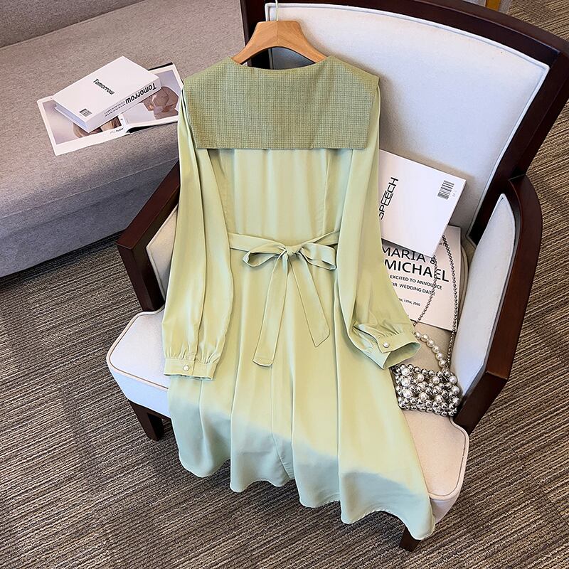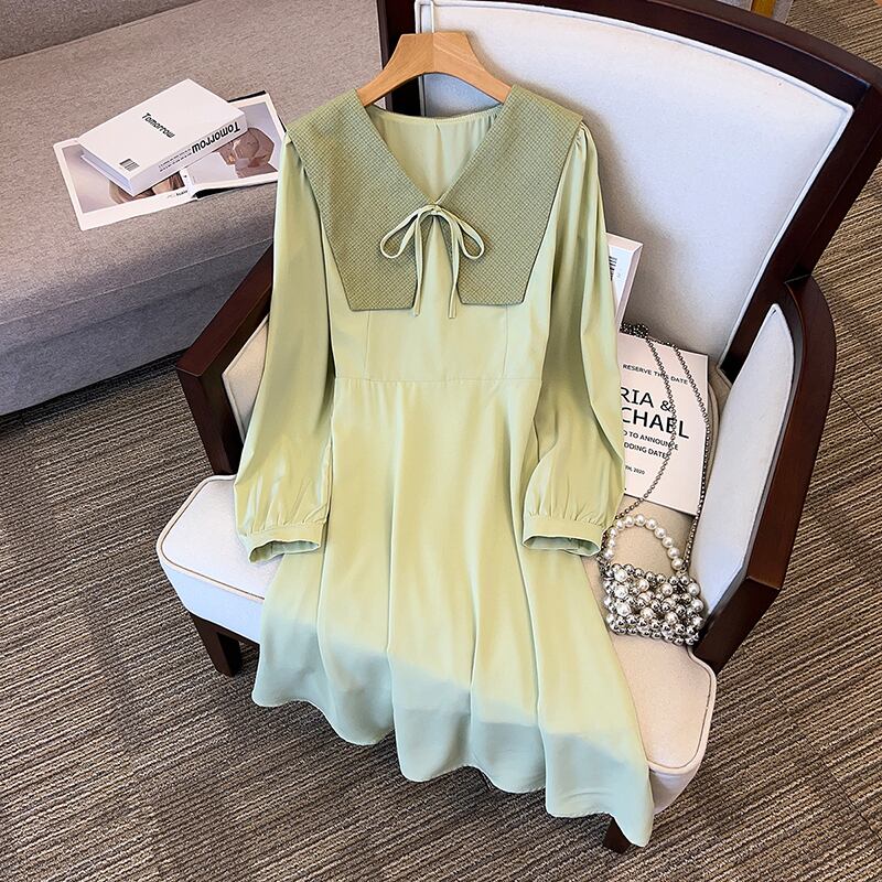 プラスサイズの婦人服 2023 春服脂肪姉妹新フレンチ全試合ウエスト痩身 eign スタイル長袖ドレス女性 ロング 大きめサイズ スプリング 春物 8884128469779454