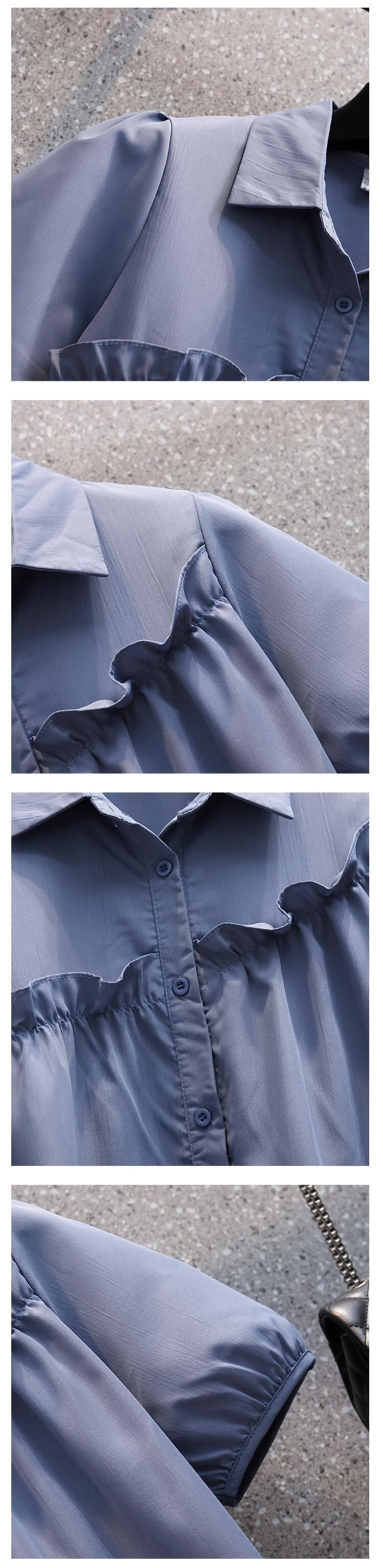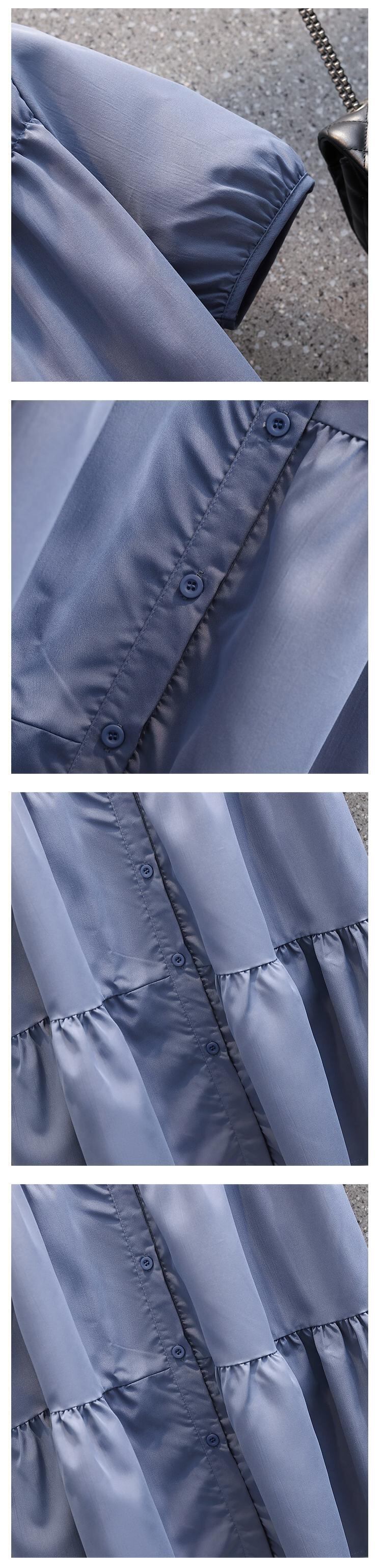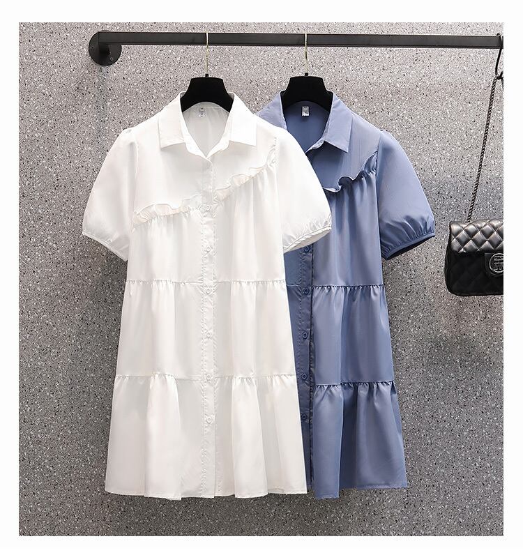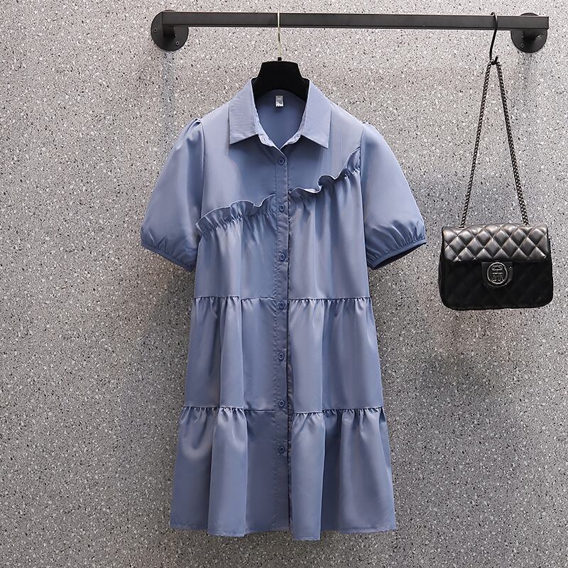 プラスサイズの婦人服 2023 夏の新しいファットシスターファッションオールマッチ気質パフスリーブ年齢を減らす無地ドレス 大きめサイズ サマー 夏物 ソリッドカラー 8884144717369257