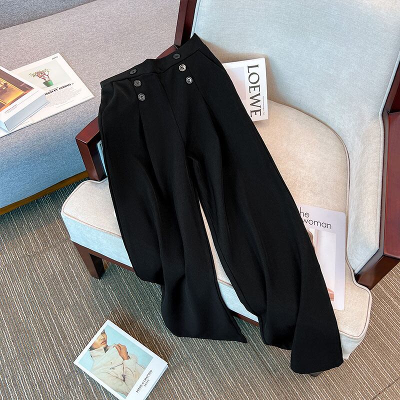 プラスサイズの婦人服2023春服の新しい太った姉妹ハイウエストのダブルブレストのルーズなスリムでオールマッチの気質のカジュアルパンツ 大きめサイズ スプリング 春物 8884182510406089