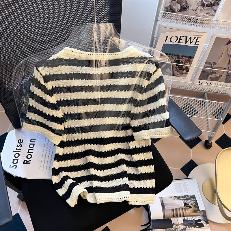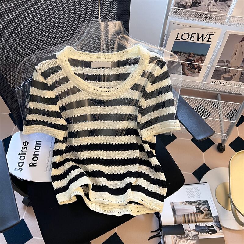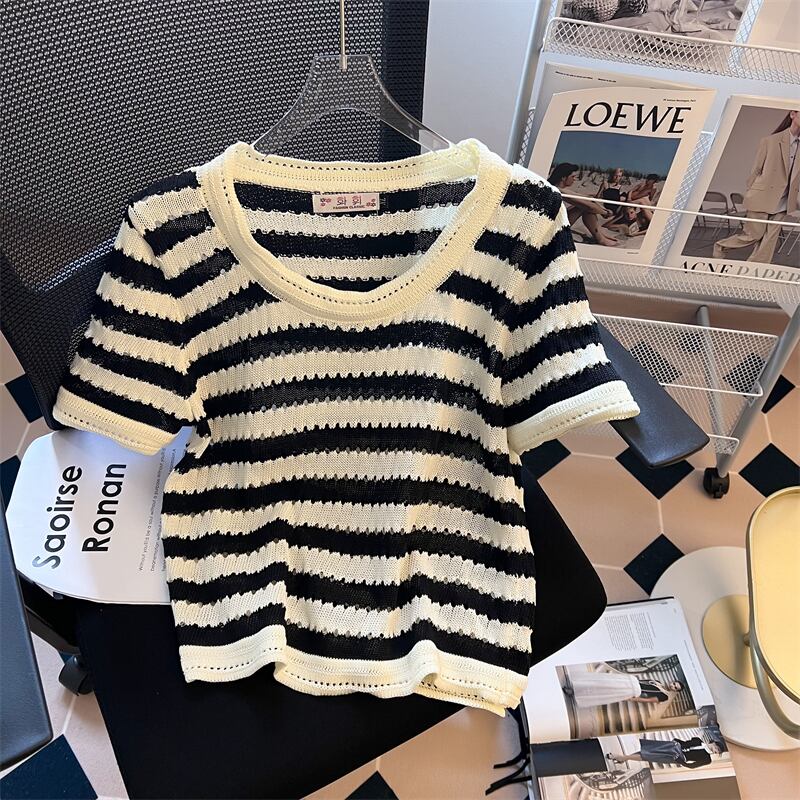 プラスサイズの婦人服 2023 夏の新しい太った姉妹の気質ラウンド ネック年齢を減らすストライプ オールマッチ ファッション カジュアル Tシャツ 大きめサイズ サマー 夏物 Oネック 8884165693168020