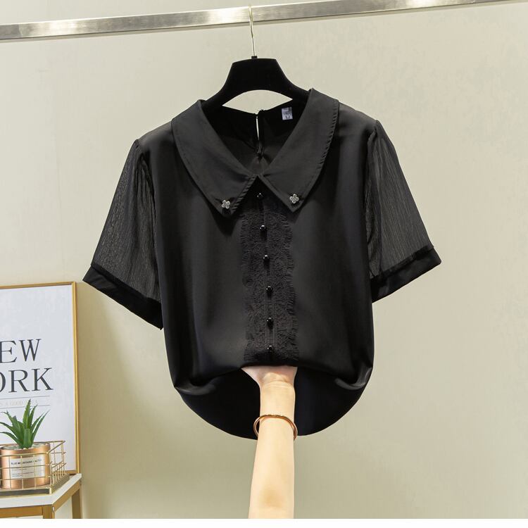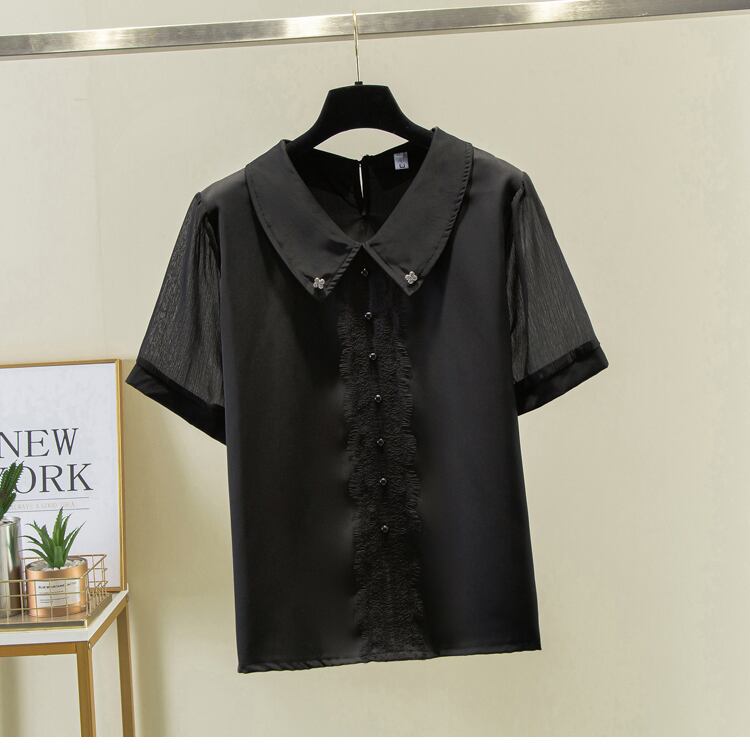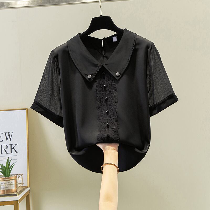 プラスサイズの婦人服 2023 夏の新しいスタイルの脂肪姉妹バージョンオールマッチルーズラペル気質半袖シフォンシャツ女性 大きめサイズ サマー 夏物 8884124555214022