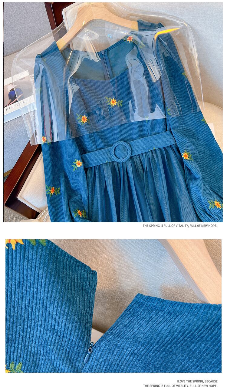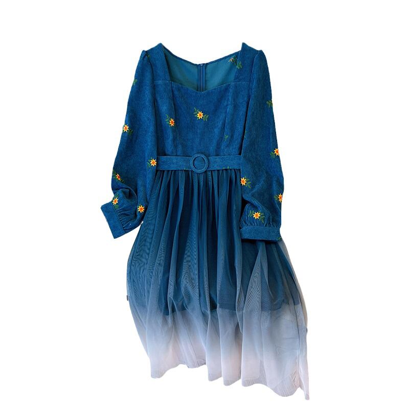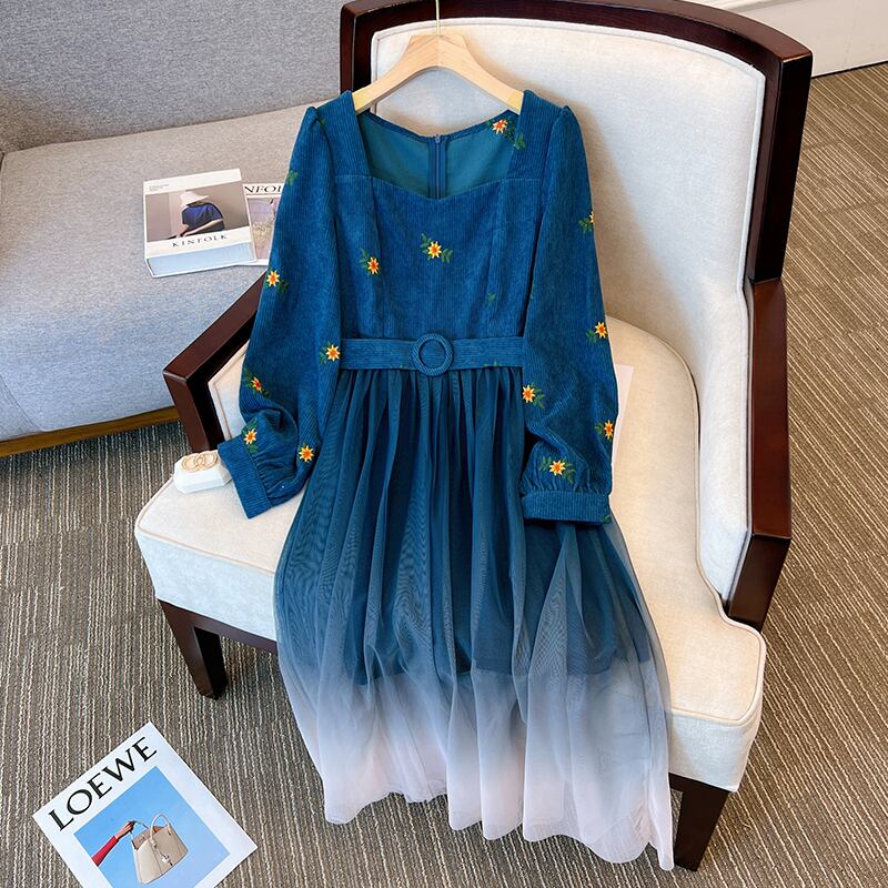 プラスサイズの婦人服 2023 春の新しい太った姉妹の気質のファッション年齢を減らす刺繍メッシュ ステッチ カジュアル ドレス 大きめサイズ スプリング 春物 888412197984871