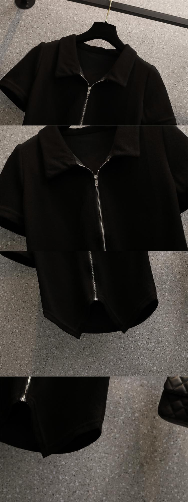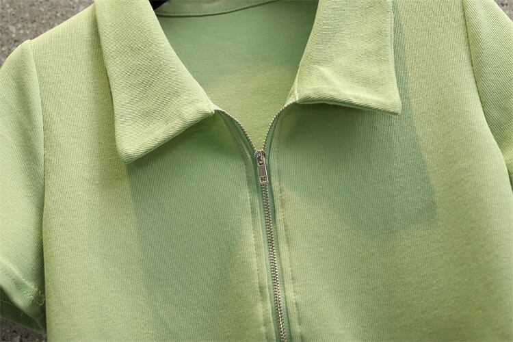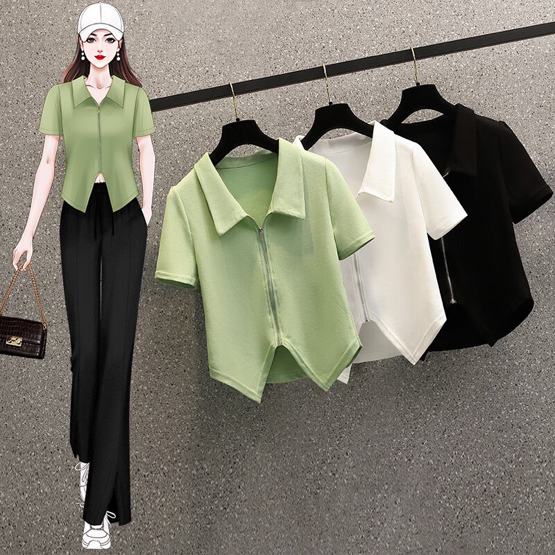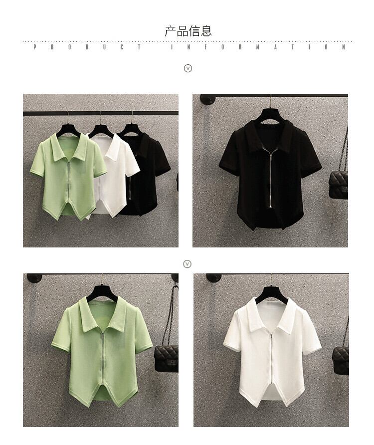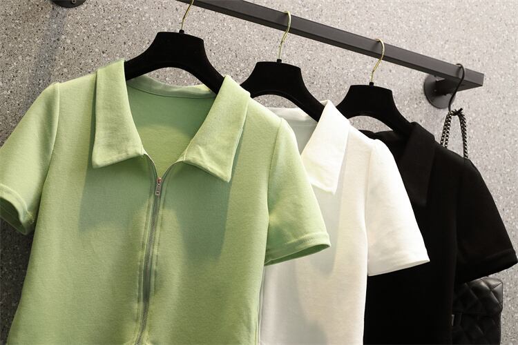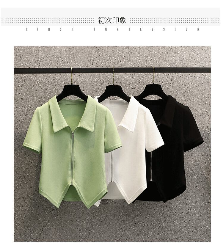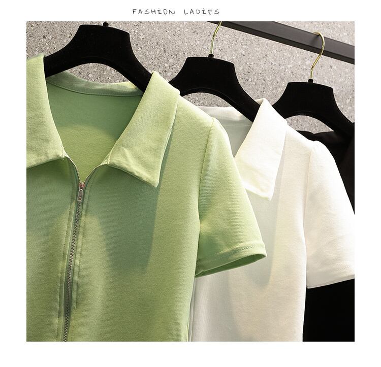 プラスサイズの婦人服 2023 夏の新しいファットシスターファッション全試合ポロ襟デザインジッパーカーディガントップ 大きめサイズ サマー 夏物 8884133081496641