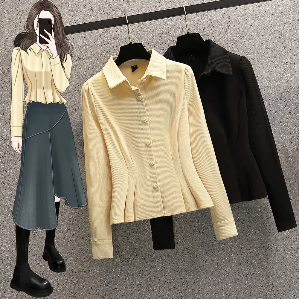 プラスサイズの婦人服 2023 春服脂肪姉妹新ファッション eign スタイルニッチウエスト痩身長袖シャツトップ ロング 大きめサイズ スプリング 春物 8884153573190608