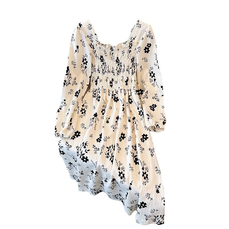 プラスサイズの婦人服 2023 春の新しい脂肪姉妹フレンチ ウエスト スリム花柄スクエア カラー ドレス女性 大きめサイズ スプリング 春物 スクウェア 8884193943879465