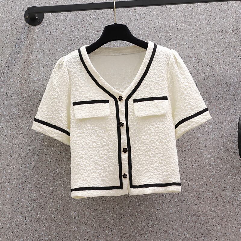 プラスサイズの婦人服 2023 夏の新しいファットシスターファッションオールマッチデザインセンス V ネック半袖カジュアルトップ女性 大きめサイズ サマー 夏物 Vネック 8884161541978828