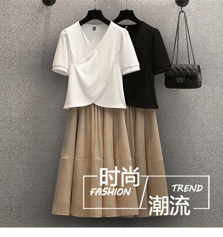 プラスサイズの婦人服 2023 夏の新しいファットシスターシックなニッチトップハイウエストカジュアルスカートツーピースセット ハイウェスト 大きめサイズ サマー 夏物 8884145935962863