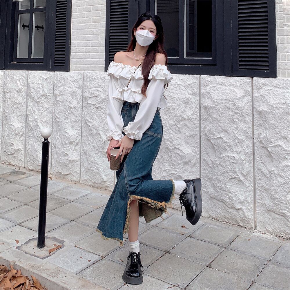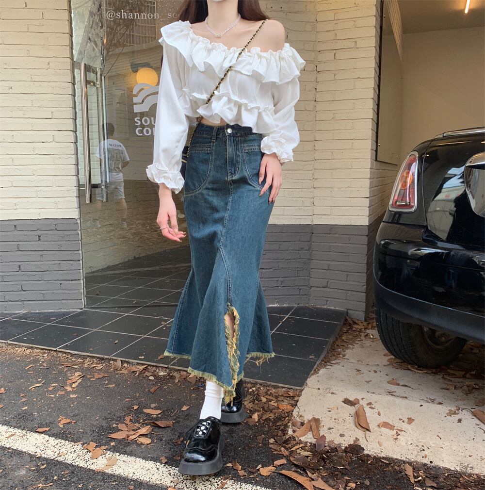 プラスサイズの婦人服 2023 脂肪姉妹春の新フィッシュテールスカートロングスカートハイウエストスリムレトロデニムスカートスカート ハイウェスト 大きめサイズ スプリング 春物 8884196934810687