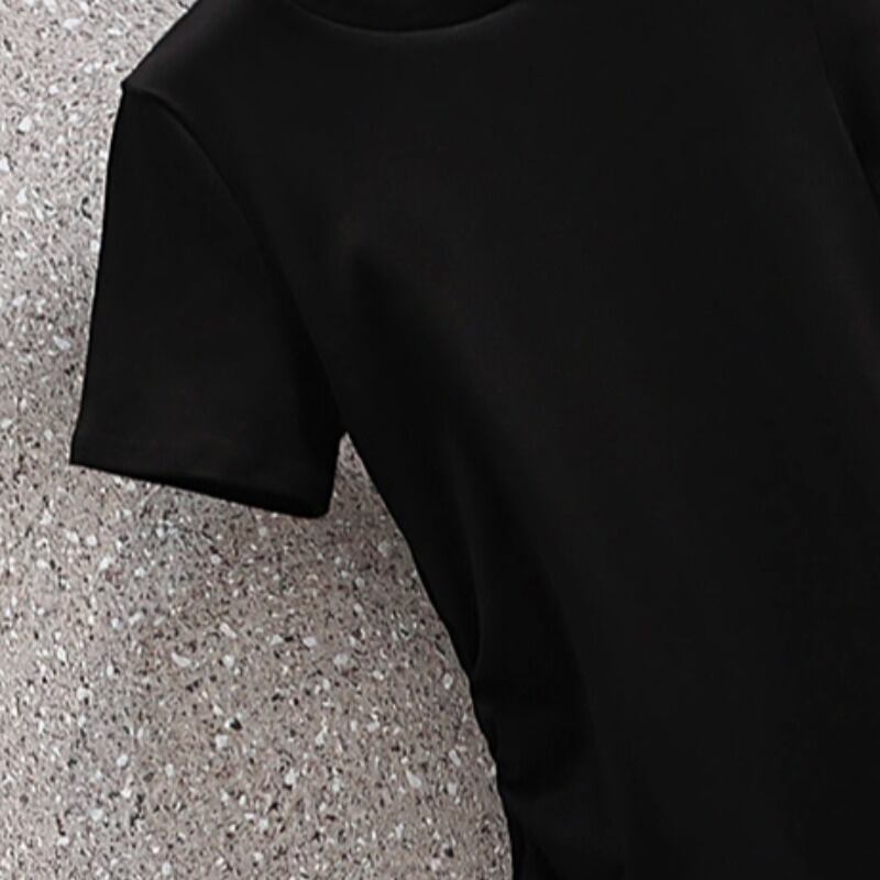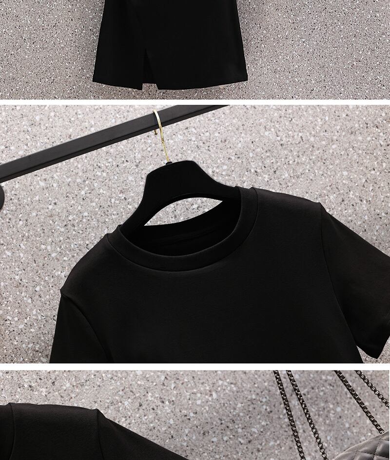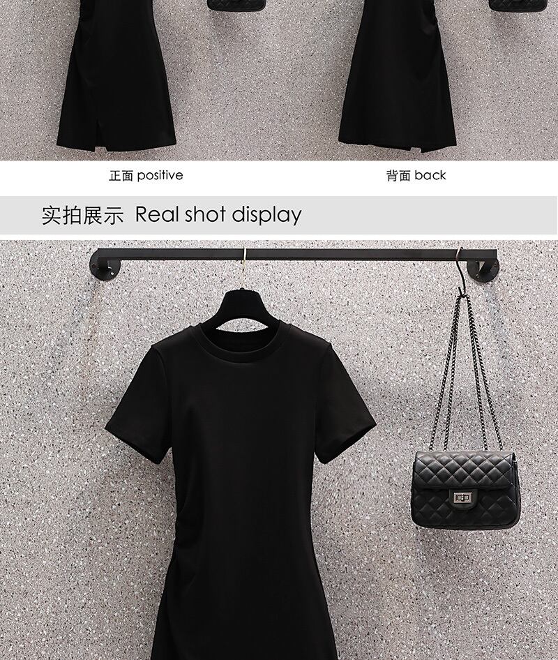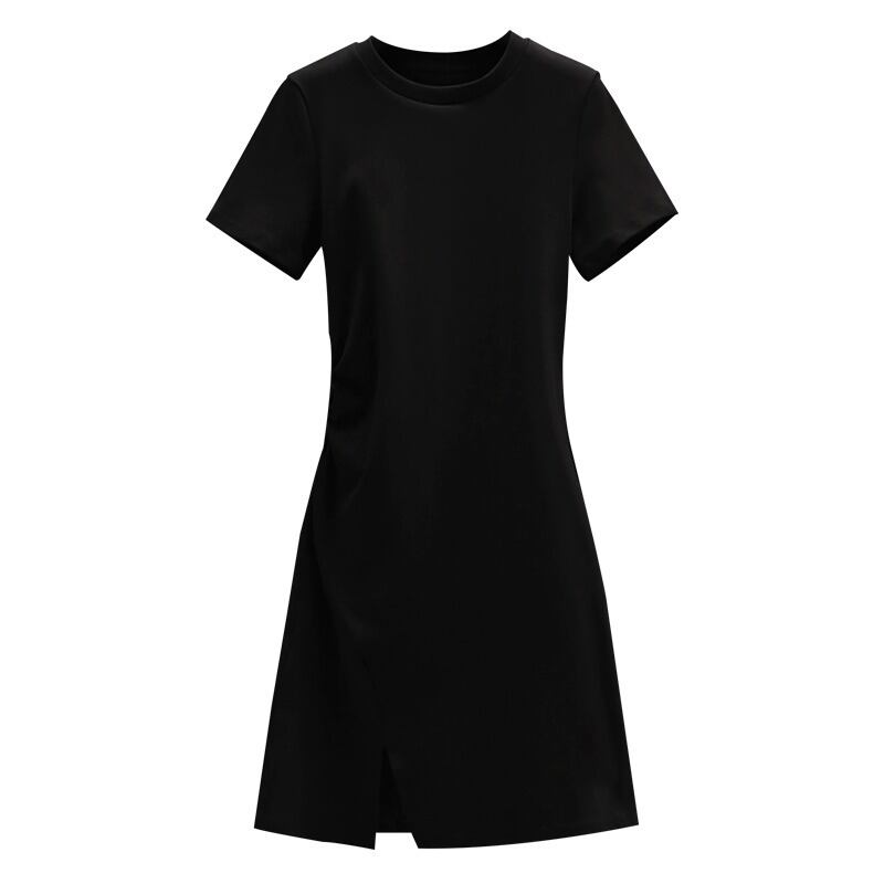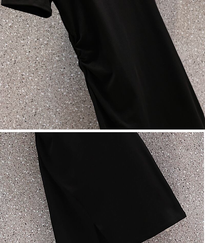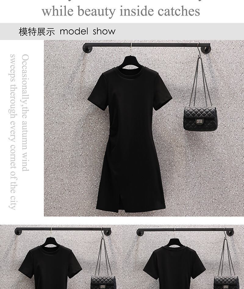 プラスサイズの婦人服 2023 夏の新しいファットシスター年齢削減半袖スリットデザインウエスト無地ドレス 大きめサイズ サマー 夏物 ソリッドカラー 8884120443714070