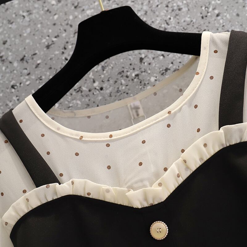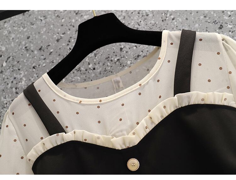大きいサイズの婦人服 2023 春服 ファット シスターズ 新作 カラーブロック シフォン スプライシング スリミング ベリーカバー ウエスタンスタイル オールマッチ トップス 大きめサイズ スプリング 春物 8884141672209785