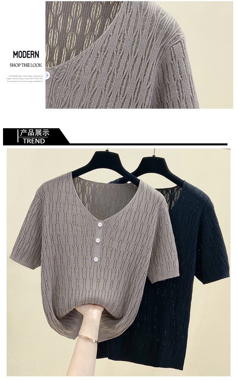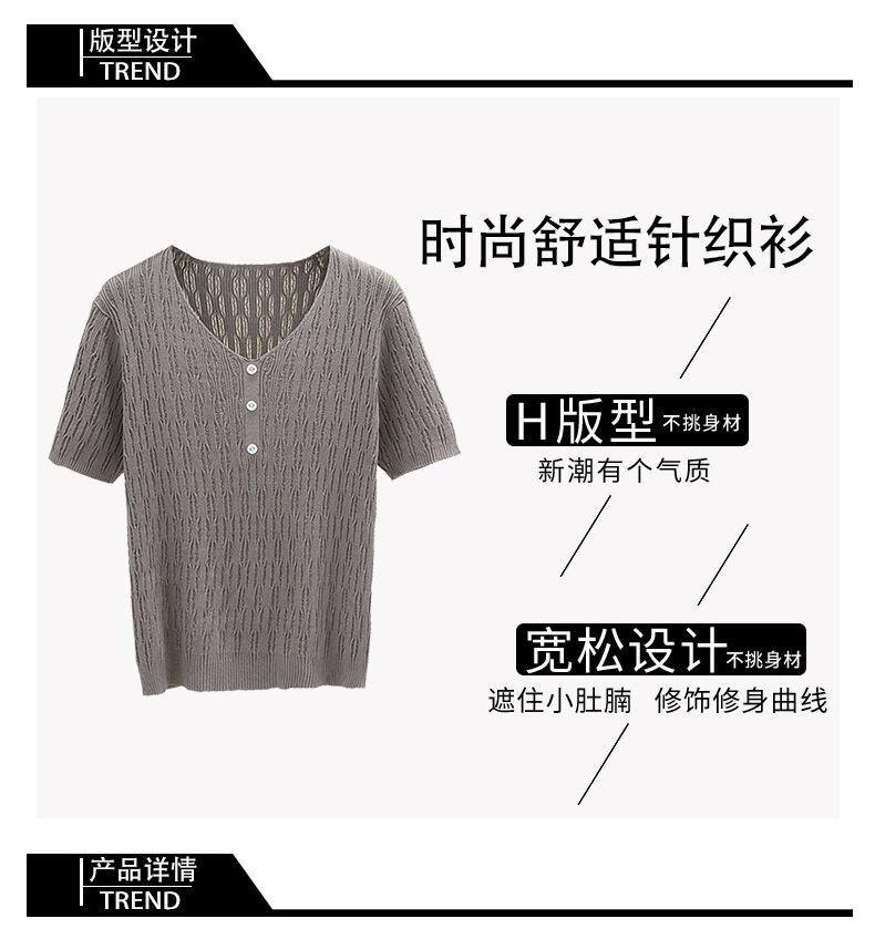 プラスサイズの婦人服 2023 夏の新しいファット シスター オールマッチ シックなニッチは肉をカバーし、薄い無地の気質に見えます Tシャツ 大きめサイズ サマー 夏物 ソリッドカラー 8884177495015773