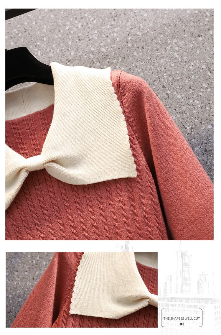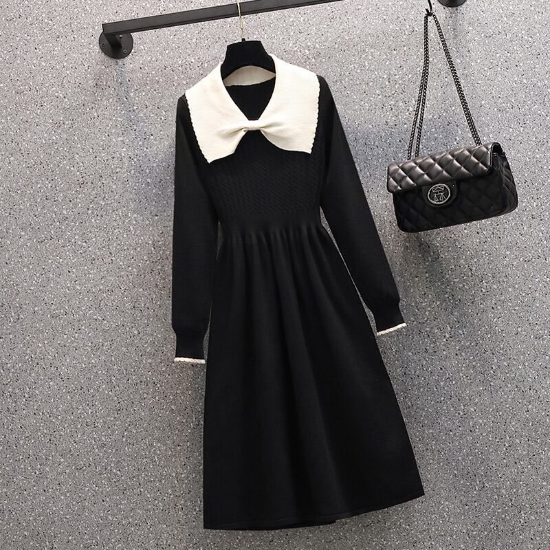 プラスサイズの婦人服 2023 トレンディな女性の春の新しいファットシスターファッションコントラストカラーニットフレンチヘップバーンスタイルの薄いドレス 大きめサイズ スプリング 春物 8884199933574259