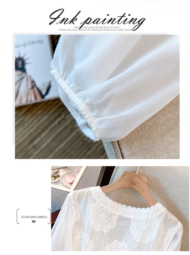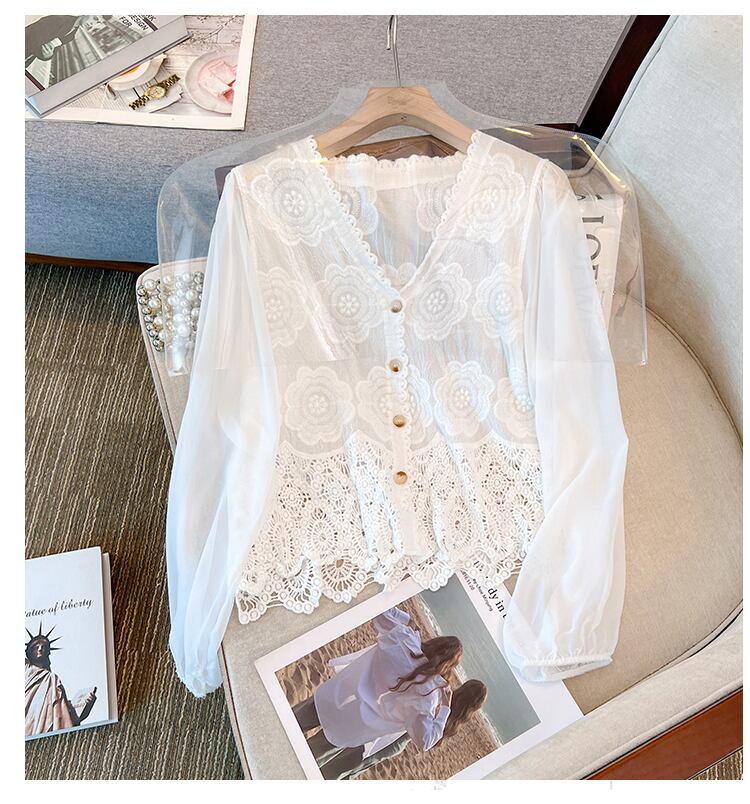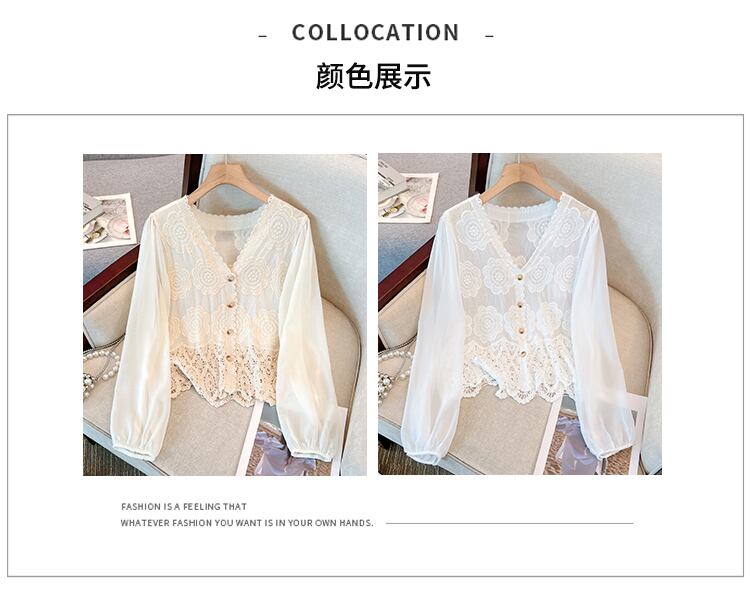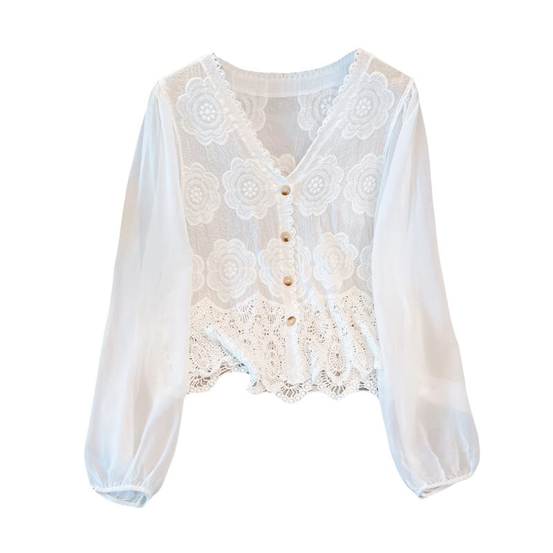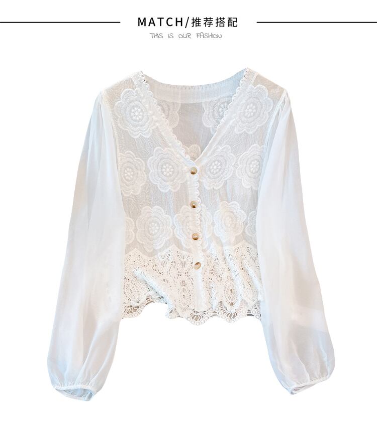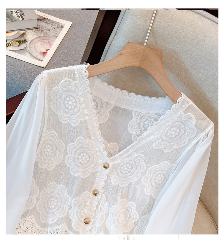 大きいサイズの婦人服 2023 春服脂肪姉妹新しいフレンチ気質 v ネックシャツ中空レーストップ 大きめサイズ スプリング 春物 Vネック 8884174318930566