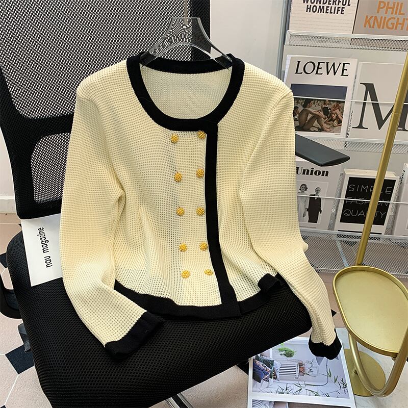 プラスサイズの婦人服 2023 春服脂肪姉妹新アイスシルクニットカーディガンダブルブレストボタンスリムスリムトップ女性 大きめサイズ スプリング 春物 8884169916397399