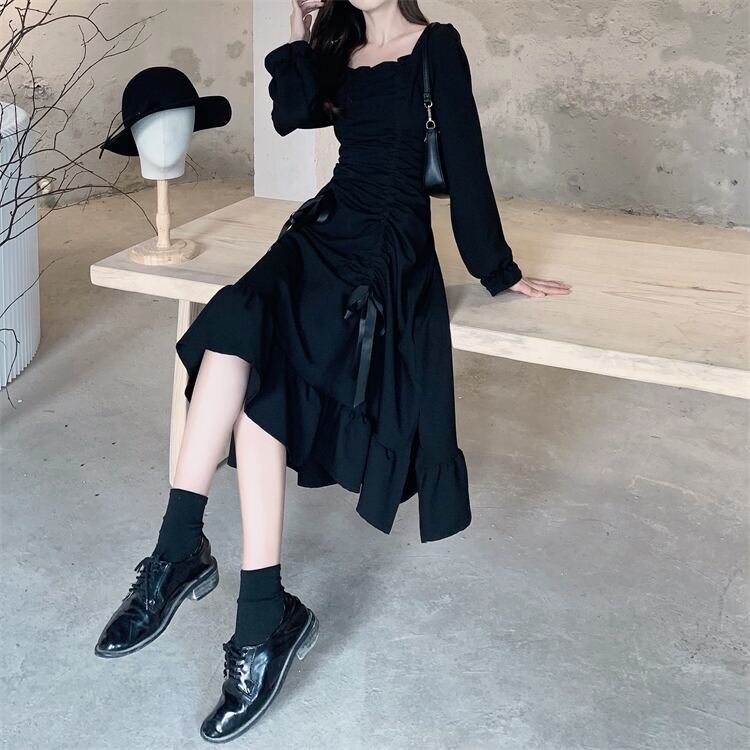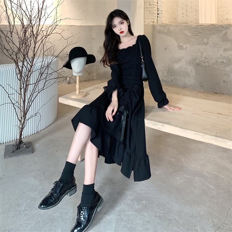 大きいサイズの婦人服 2023 トレンディな女性の春の新しい太った姉妹フレンチ スタイル不規則なオールマッチ スキニー ドレス 大きめサイズ スプリング 春物 8884183065384468
