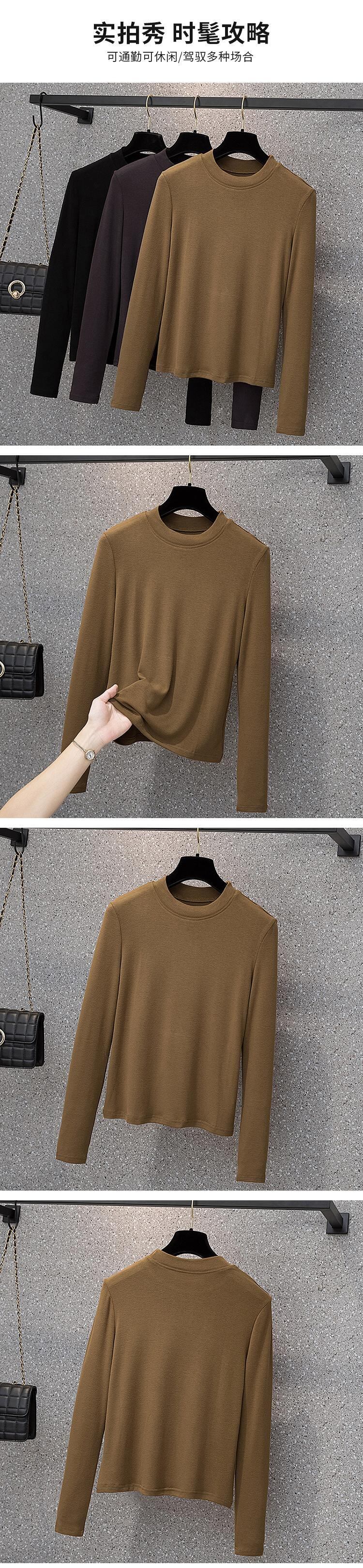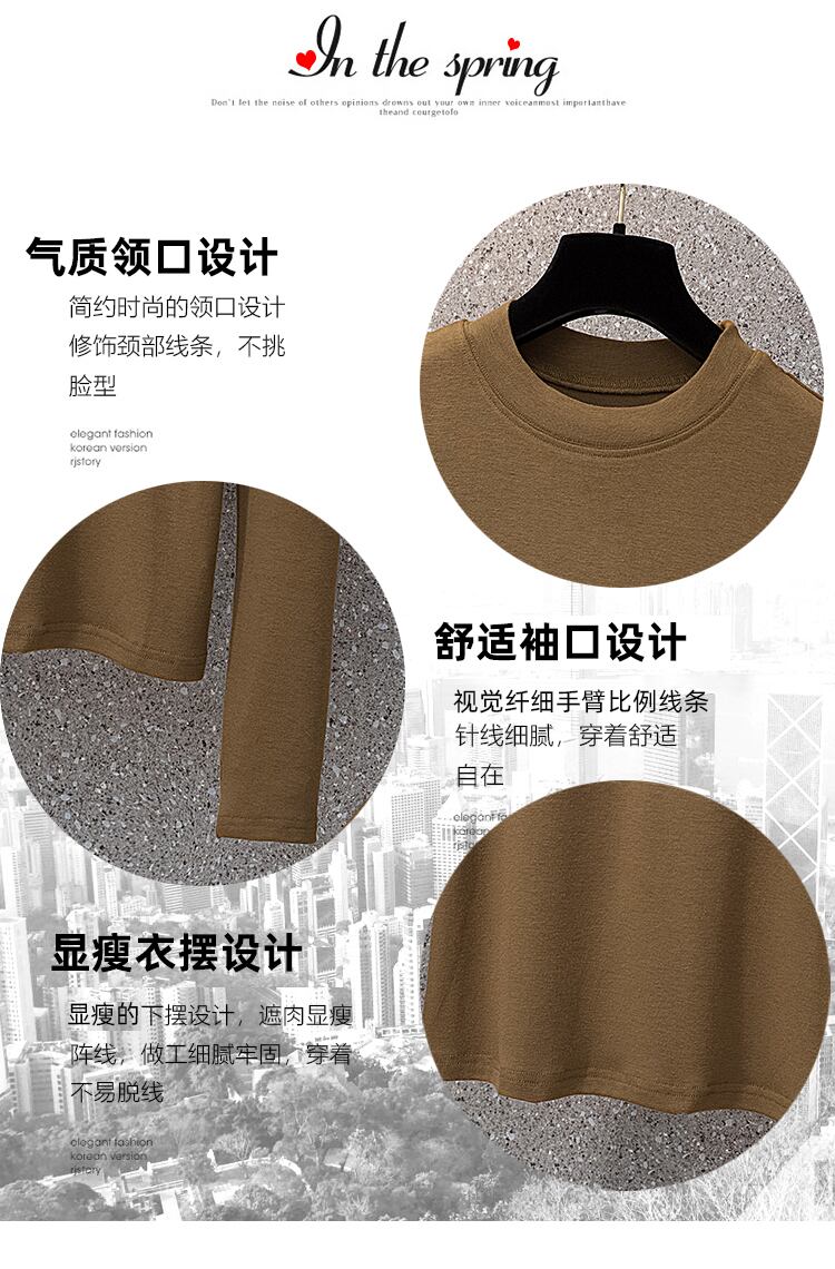 プラスサイズの婦人服 2023 春の新ファッションラウンドネック痩身弾性無地底入れシャツ脂肪 エラスティック 伸縮 大きめサイズ スプリング 春物 Oネック ソリッドカラー 888414569224963
