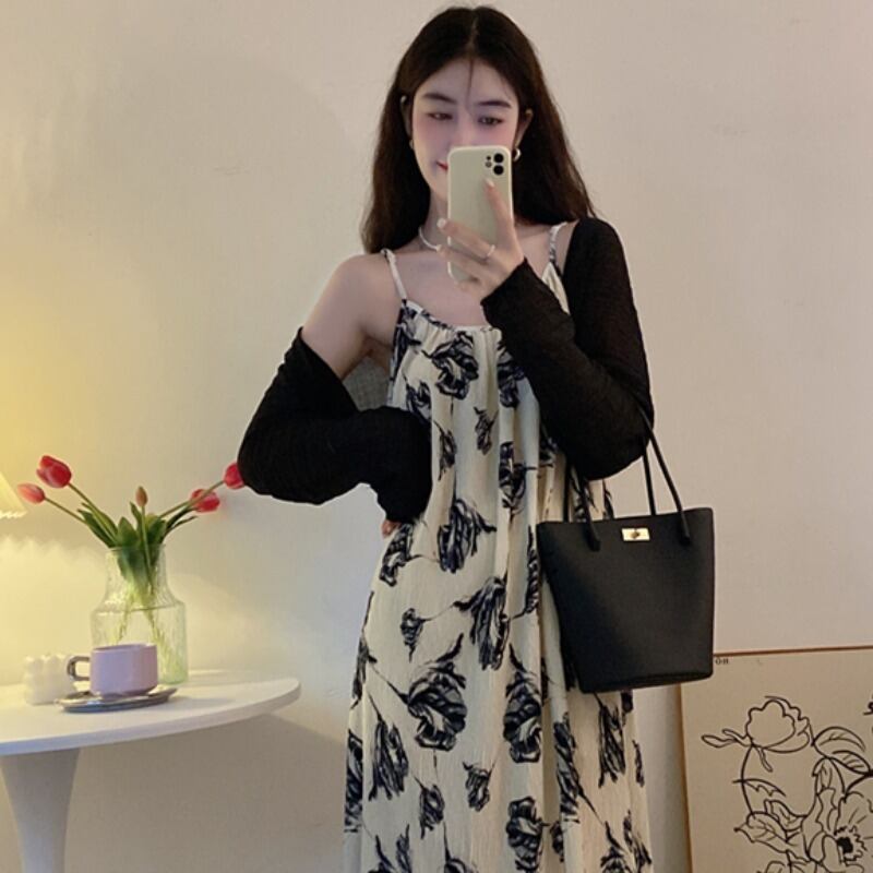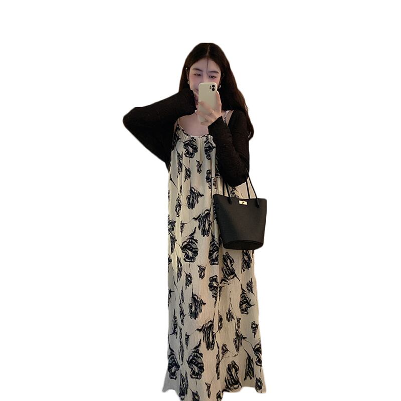 プラスサイズの婦人服 2023 春の新しいファットシスター年齢を減らすショールシャツウエストストラップドレス 2 点セット 大きめサイズ スプリング 春物 8884132168520624