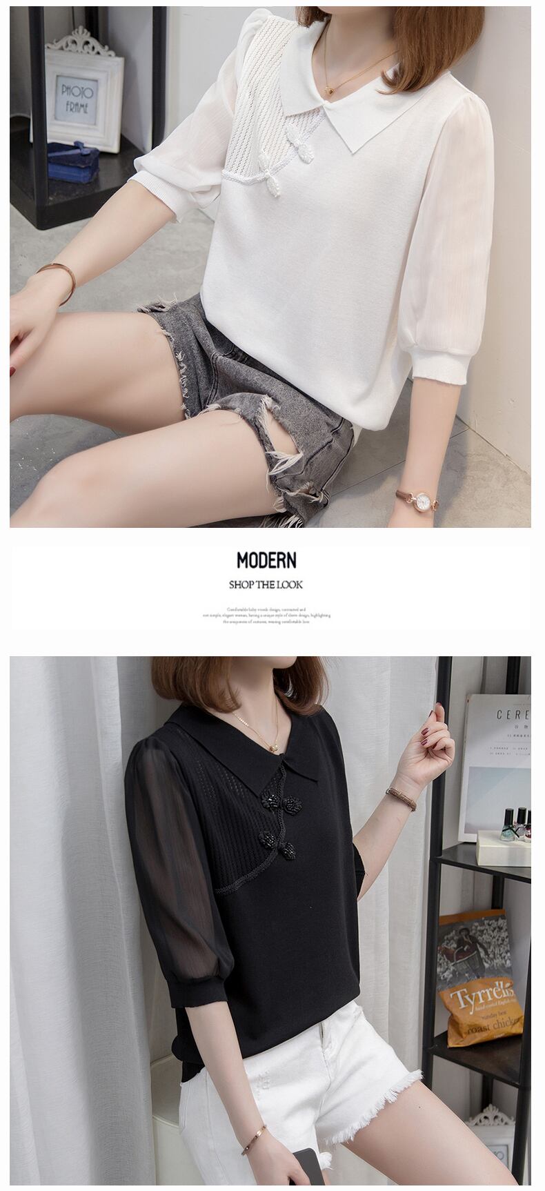 大きいサイズの婦人服2023夏新作ファットシスターシックカジュアル無地デザインセンスポロカラー年齢対策Tシャツ 大きめサイズ サマー 夏物 ソリッドカラー 8884179289863885