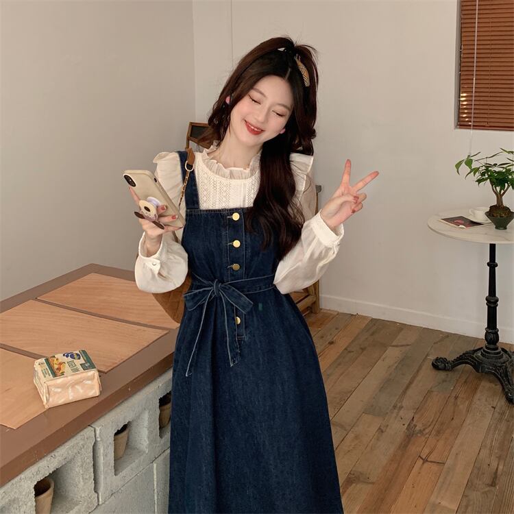 プラスサイズの婦人服 2023 春服脂肪姉妹新デニムサスペンダースカートミッドレングススリムウエストベルトサスペンダースカート女性 大きめサイズ スプリング 春物 ハーネス 888411964898453