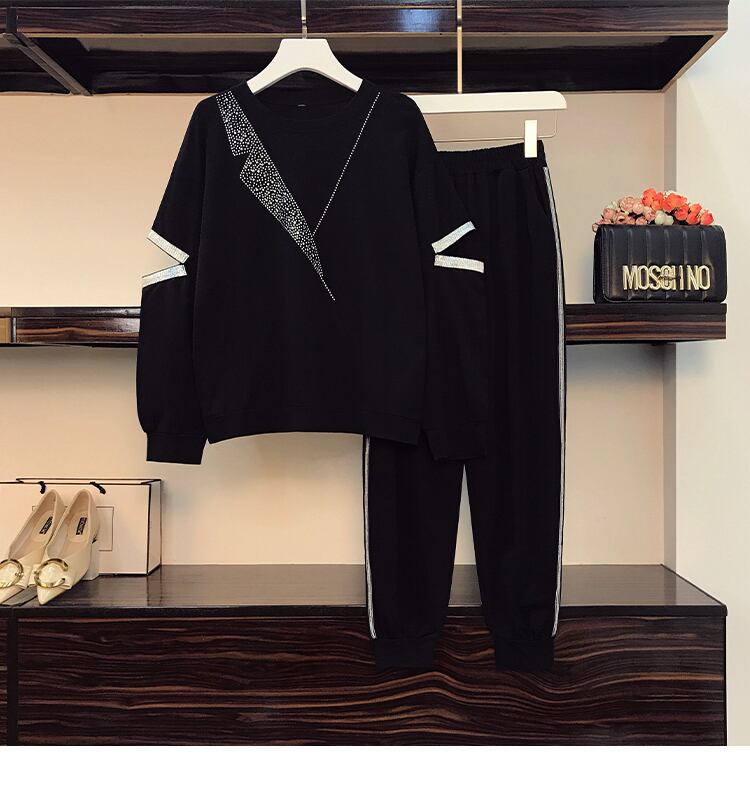 大きいサイズの婦人服 2023 トレンディな女性の春の新しいスタイルのファット シスター ルーズ スリム トップス多彩なファッション カジュアル パンツ 2 点セット 大きめサイズ スプリング 春物 8884121575021983